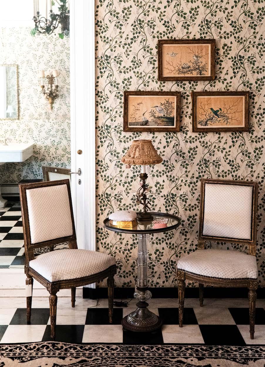 Elsewhere, a pair of wooden vitrines, richly lacquered and hand-gilded, stand sentinel in the hallway. An arched cornice accents the taller of the two, emulating the grace of a temple pagoda. Inside rests Isekiâs collection of fine china and crystal, lovingly amassed through the years. One full porcelain service bears handpainted botanical drawings, an intricate design instantly recognizable as Flora Danica. The pattern, conceived by Royal Copenhagen in 1803 for a Danish king, remains among the most coveted in the world.