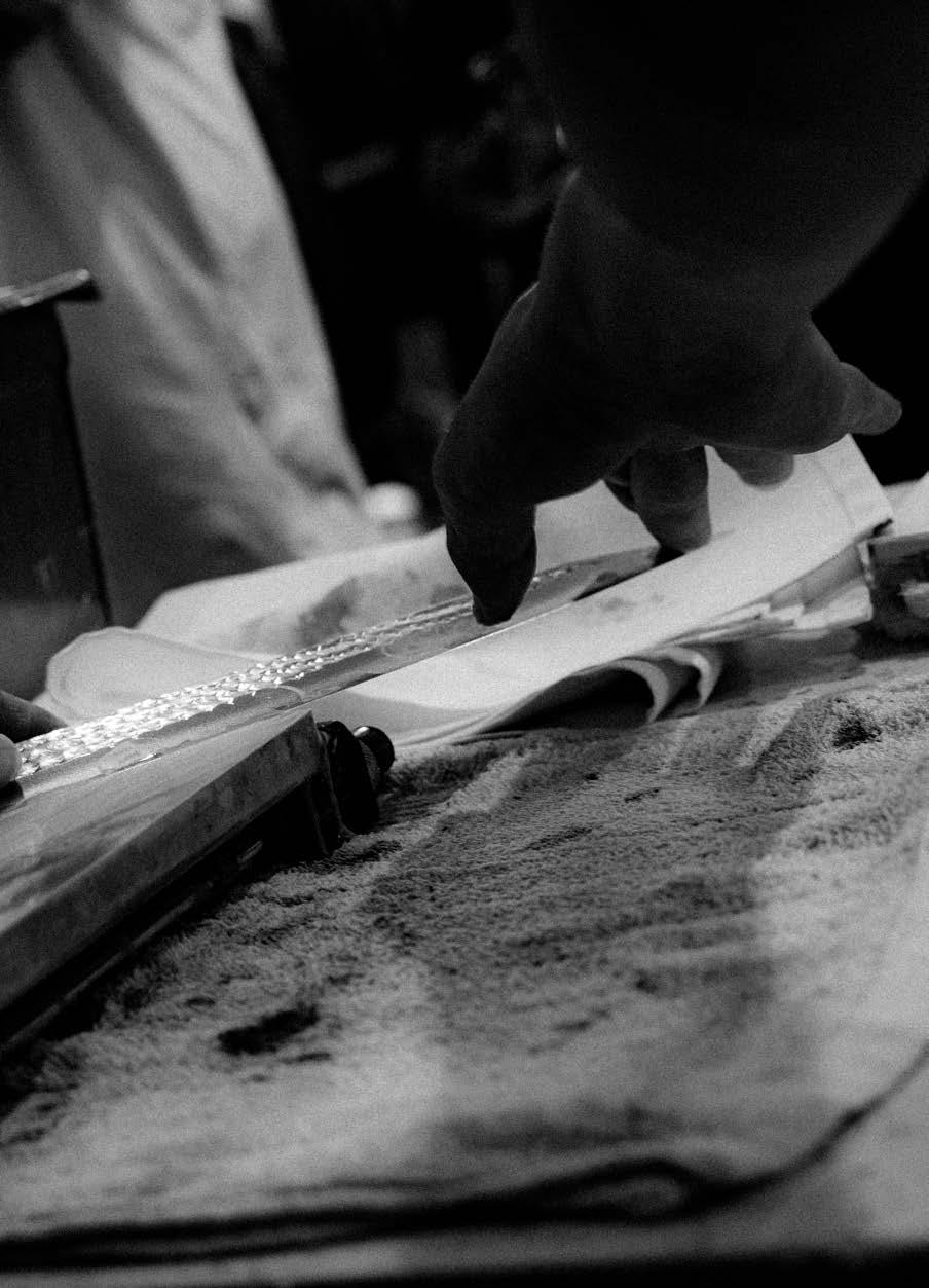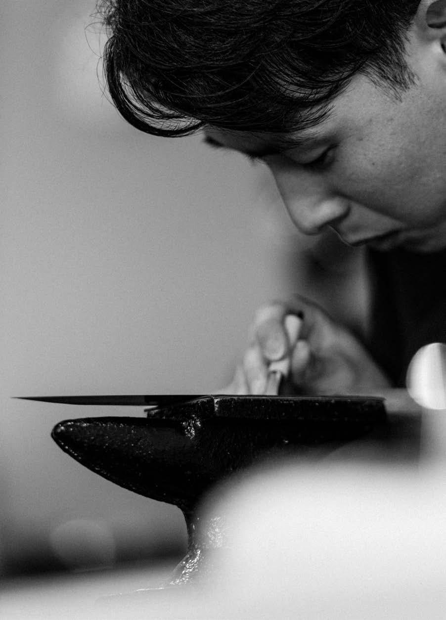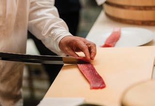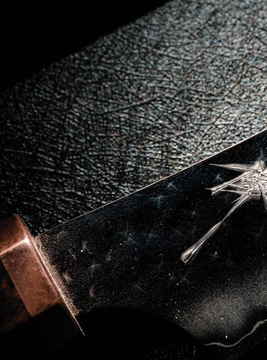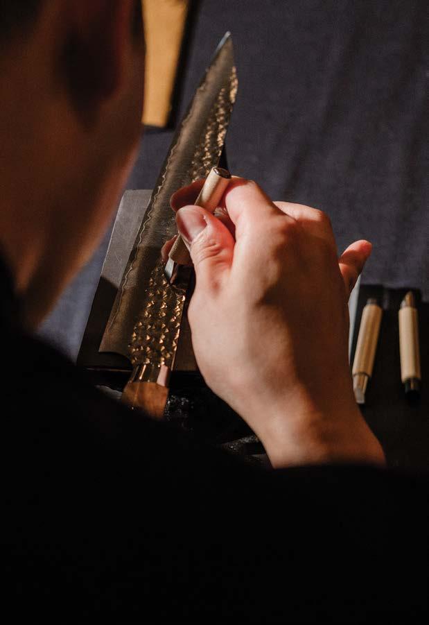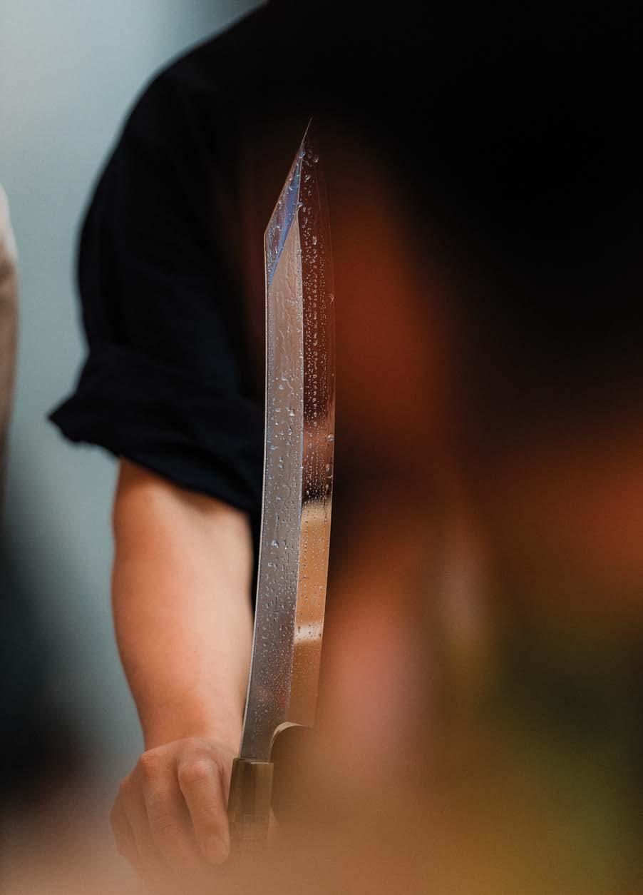 Iwas a 24-year-old sous chef when I purchased my first hÅchÅ, or Japanese knife. It was an eightand-a-half-inch Nenohi Nenox Corian Gyuto crafted from stain-resistant carbon steel, with a Western-style build that lent it a heavier handle and wider blade than traditional Japanese knives.