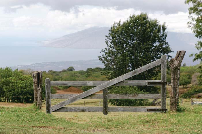 Spread across HaleakalÄâs northwestern flank, Upcountry Maui unfolds in long, slow curves of pastureland and forest. The region is a departure from the quintessential vision of Maui: sunlit coral reefs, coconut palms rippling above amber beaches. Here, the air is crisp and cool, scented with eucalyptus and jacaranda. Horses and cattle graze in wide, undulating fields as cowboy-boot-clad ranchers talk story over fencelines. Below, the land falls toward Mauiâs central valley and south and north shores, where views of the Pacific extend to the horizon.