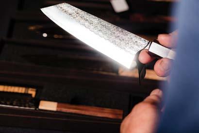 even and true. Later, as a master bladesmith with his own workshop, he began perfecting other knives, such as his signature gyuto and santoku.