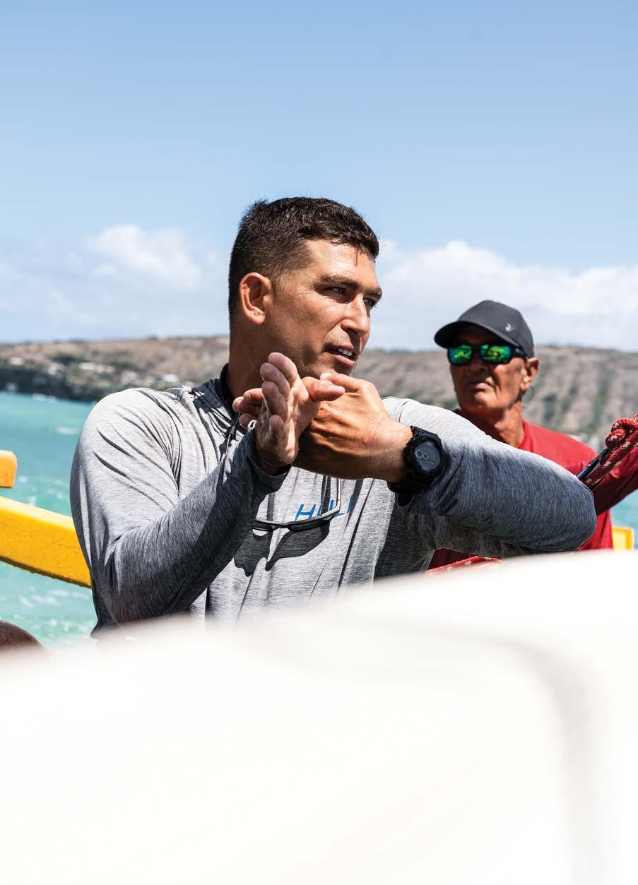 Shaped by his time navigating HÅkÅ«leâa, and the ecological knowledge it imparted, he began looking for a way to carry those lessons homeward. He found a partner in fellow waterman Jesse Yonover, a HÅkÅ«leâa crew member raised, like Kino, along Maunalua Bay. Together, they founded Huli in 2015 to cultivate the next generation of eco-stewards, anchoring the work in their home bay and using place itself as a teacher.