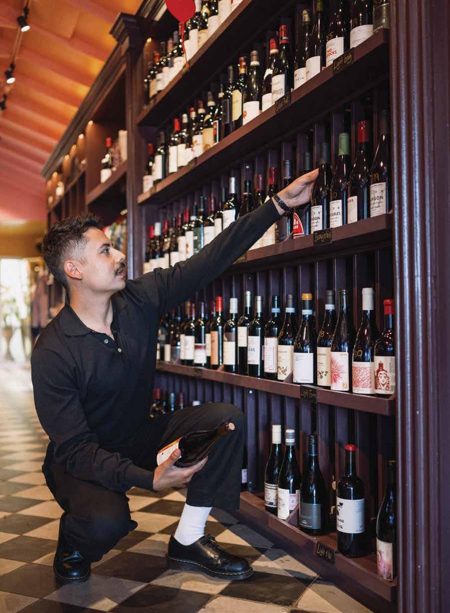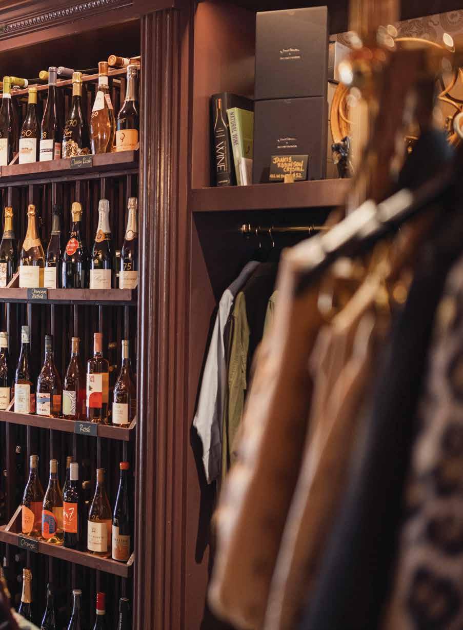 Above: Offhand Wine Bar opened in 2022 by Westside Winos, a group of friends, wine lovers and DJs. Left: Sommelier Nick Dumergue stocks the shelves of Divine Vintage, the spot he co-founded. Page 78 - 79, Divine Vintage.