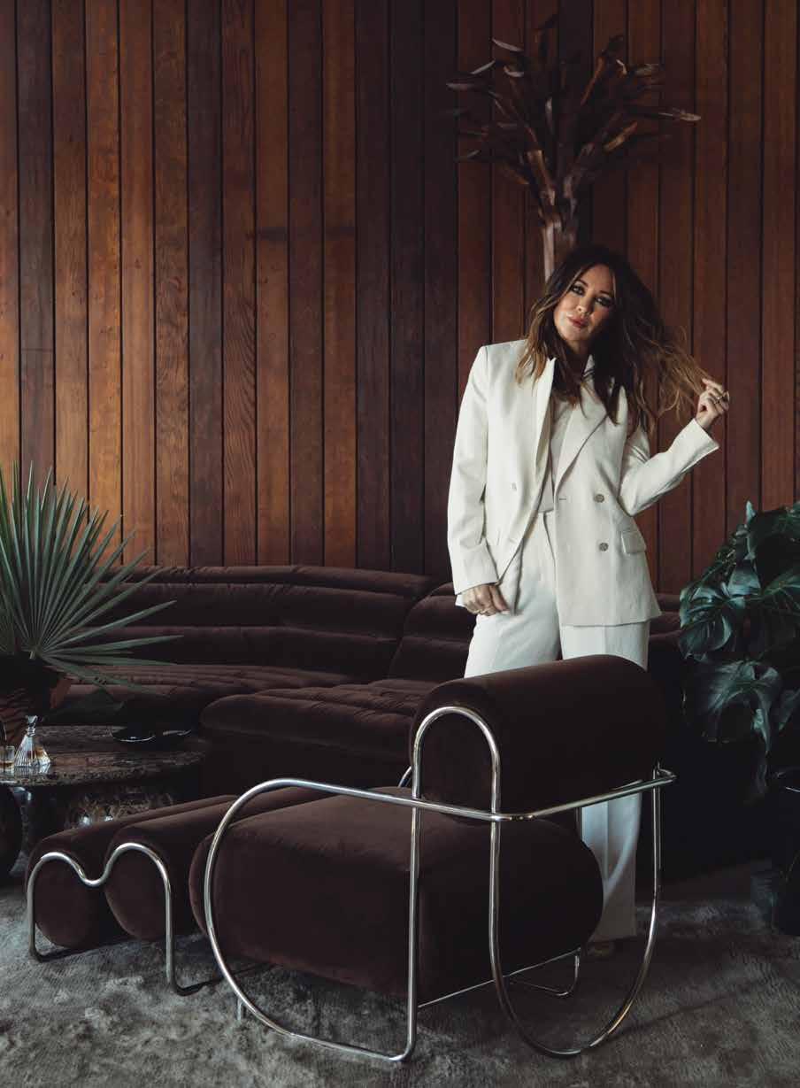 Left: Tiffany Howell, the Principal of design firm Night Palm, strikes a pose. Above: Howell’s “Lovers Rock” project in Los Feliz. Next Page: The living room at Lovers Rock. Images by Pablo Enriquez.