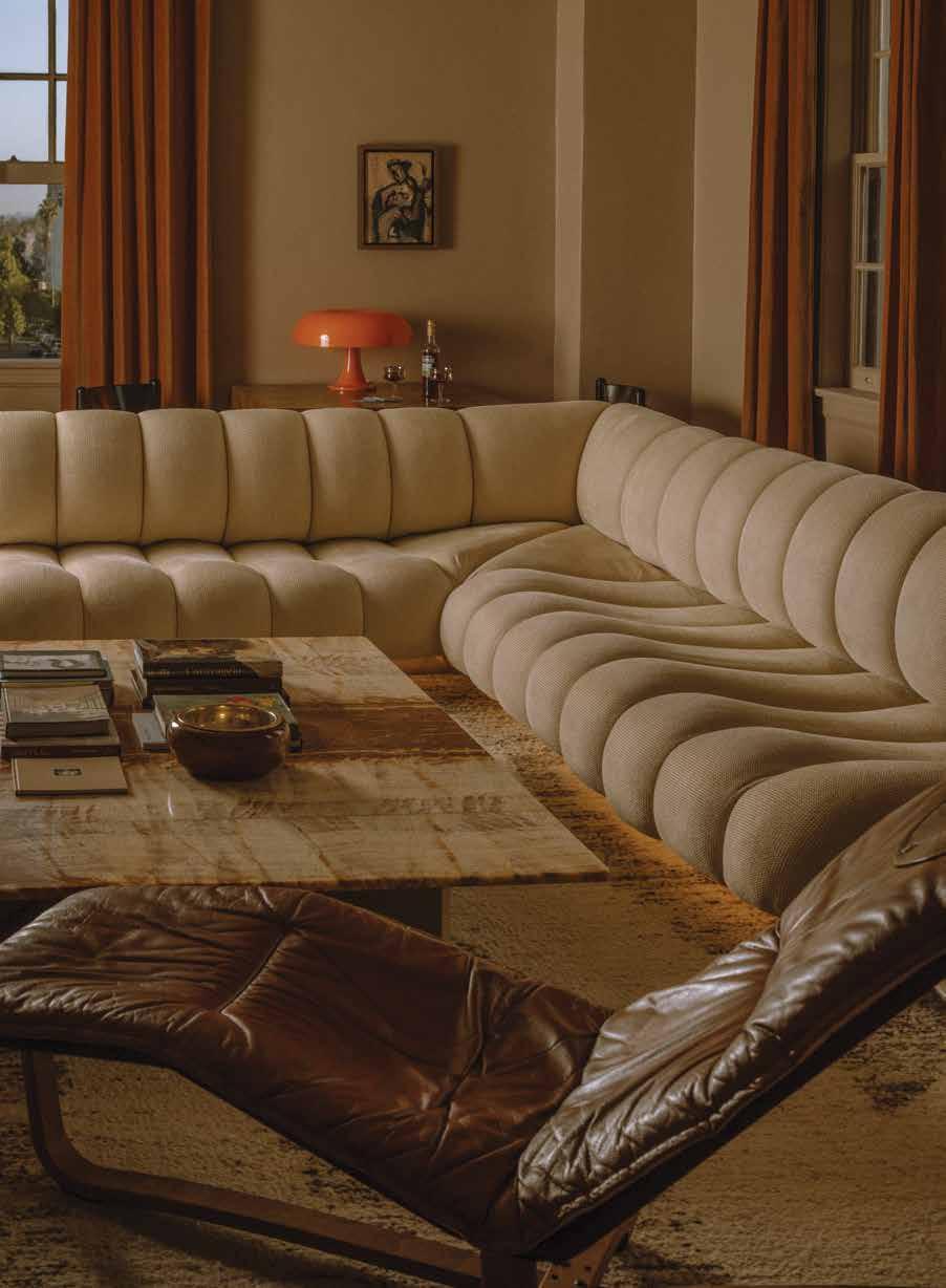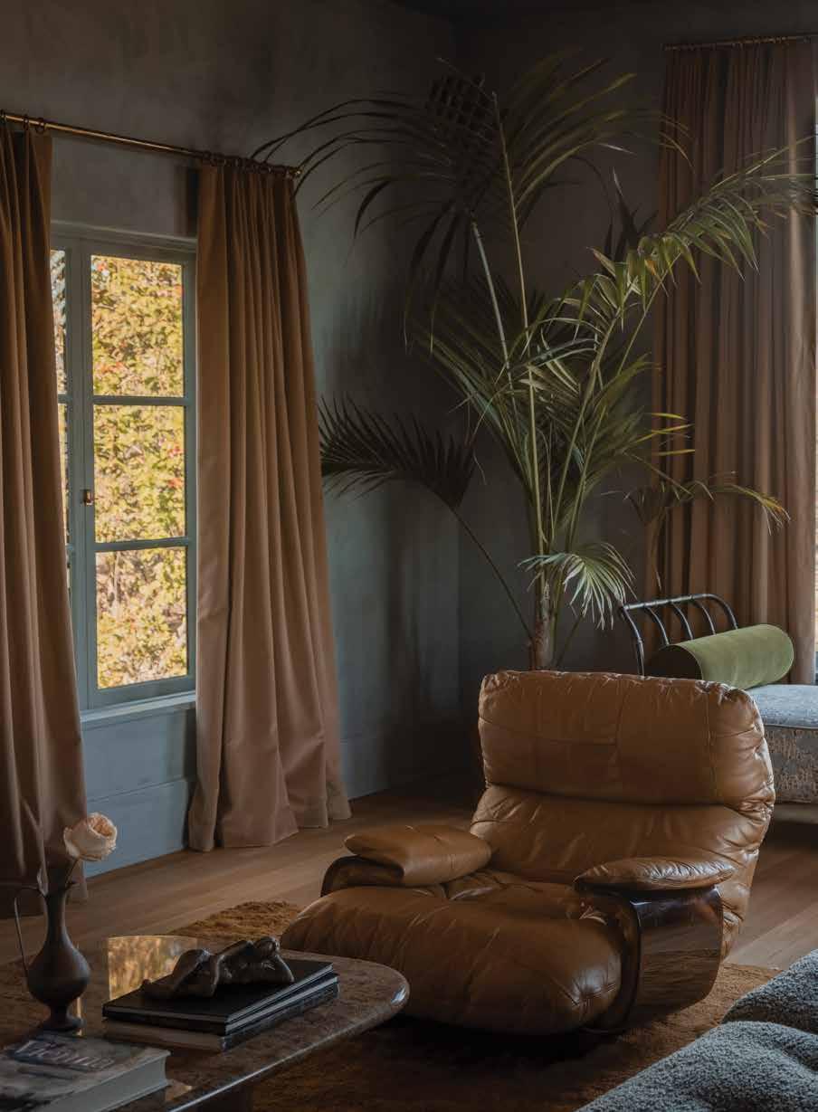 Having once produced videos for Britney Spears and Jennifer Lopez, Howell also recommends starting projects with a song in order to accurately assess the mood of a room. The sounds of Leonard Cohen, Lana Del Rey and the Velvet Underground have all inspired the dusky, rock ‘n’ roll romance that imbues Howell’s spaces. “I kick off every project with a soundtrack,” she says. “You start with the feeling, then you lean into the aesthetic.”