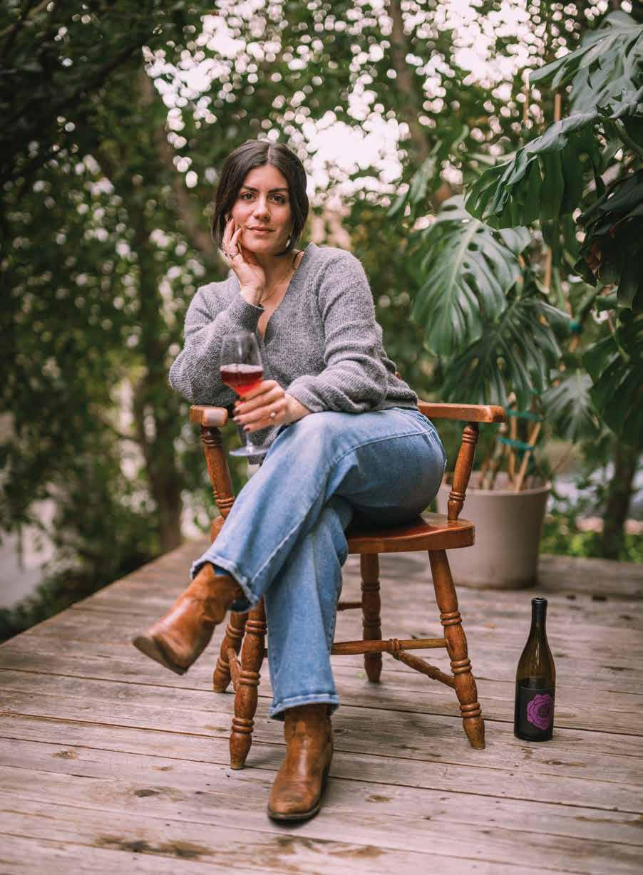 Jaramillo finds herself drawn to sophisticated “natural wines that are very clean and dialed in and aren’t overly funky,” and is excited by the contemporary wines coming from the San Luis Obispo Coast like Scar of the Sea and Say When. Jaramillo has also collaborated with friends and winemakers Wonderwerk to produce a fruity, floral red wine, Como la Flor, and the sparkling, rose-infused Chismosa. “I wanted to create a wine that felt like it represented