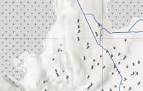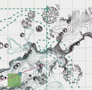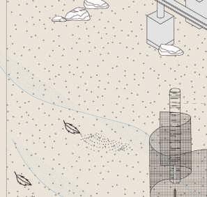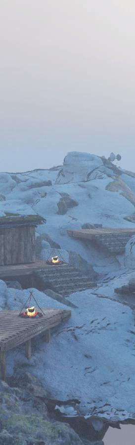 To create a more sustainable tourismenabling environment, the newly designed campsite is a space that makes use of the rocky terrain. Combining local vernacular techniques, the tents were designed with wooden decks built along the unique rocky landscape and sod roofs with seasonally replaceable walls. These design choices not only ensure minimal impact on the natural surroundings but also blend seamlessly with the environment, enhancing the aesthetic appeal. The sod roofs provide excellent insulation, promoting energy efficiency, while the seasonally replaceable walls allow the structures to adapt to changing weather conditions, ensuring comfort for visitors yearround. This thoughtful integration of traditional methods and modern sustainability principles creates a harmonious and immersive experience for all who visit.