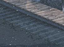 Scandinavian type of green roof covered with sod on top of several layers of birch bark on gently sloping wooden roof boards.