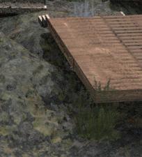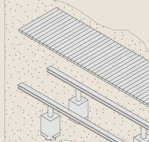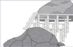 The method used by the locals is low technology but has a low environmental impact and does not require a lot of work, as the deck can be built without cutting the rocky terrain. First, as shown in the diagram on the left, a number of posts are erected between the rocky areas and the timbers are placed on top of them as handholds. Then, the timbers are cut to size by placing them directly against the rocky ground, and then lined up and fixed on top of the timbers to match the span between each rock and rock.