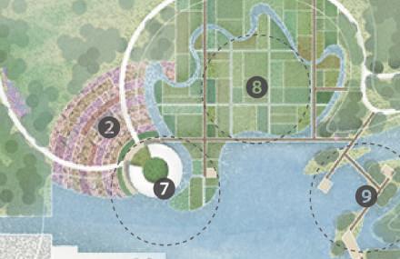 A pier is proposed as a water-friendly space in the park's large pond, where people can enjoy the landscape on the water and the hydroponic agricultural landscapes. The water surface of the Great Pond, which currently cannot be moved over the water and is mainly for viewing, will be extended. The space will allow visitors to observe the farmland more directly and to feel the farming and the water environment, which has become more biodiverse due to improved water quality and farmland.