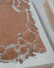 In order to verify the layering properties of biodegradable pigments, I applied multiple layers of traditional Japanese mineral pigments made by grinding natural stones, and examined the layering of colours due to the roughness of the particles.