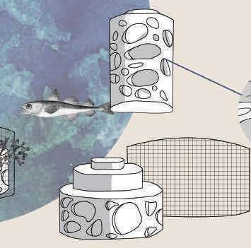 .Seaweed attaches to and grows in areas with porous structures, so the design of the area was such that it would have this structure and would serve as a pillar for the deck. Porous columns can provide a home not only for seaweed but also for small fish and plankton, helping to maintain biodiversity and ecosystems in the sea.