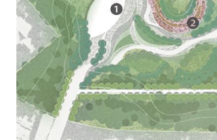 The front of the pond will be used to create hydroponic farmland, creating a new landscape within the park. A portion of the existing large pond will be developed into farmland using materials that improve water quality, with the aim of improving water quality and the overall aquatic environment through the cultivation of plants. In addition, the park will incorporate animal ecological cycles, such as duck farming, and restore the original landscape of the local area as part of the park. ❷ Flower land