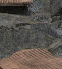 These scaffold posts are securely anchored to the rocky terrain using metal picks, providing structural support for the decks and ensuring stability against the forces exerted by the landscape.