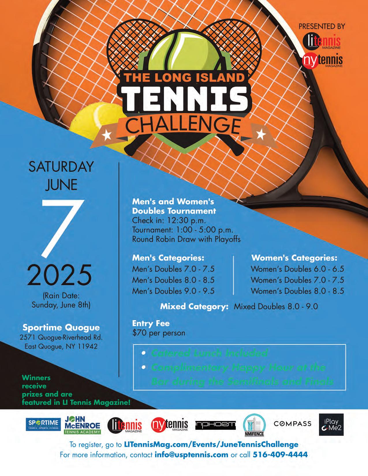 Facebook-www.Facebook.com/NewYorkTennis Instagram-@NYTennisMag • Twitter-@NYTennisMag Submissions for both advertising and editorial are due by April 5, 2025 For more information, please call 516-409-4444 or e-mail Advertise@NYTennisMag.com