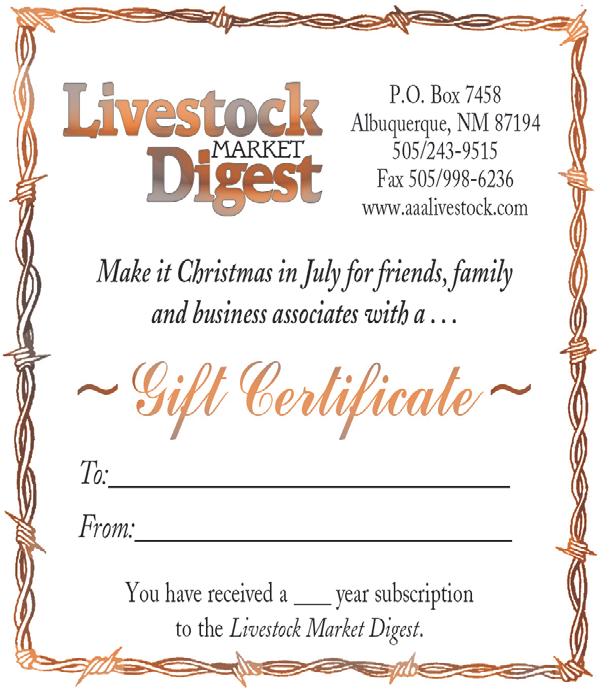 Livestock Market Digest P.O. Box 7458 Albuquerque, N.M. 87194 Telephone: 505-243-9515 Fax: 505-349-3060 www.aaalivestock.com