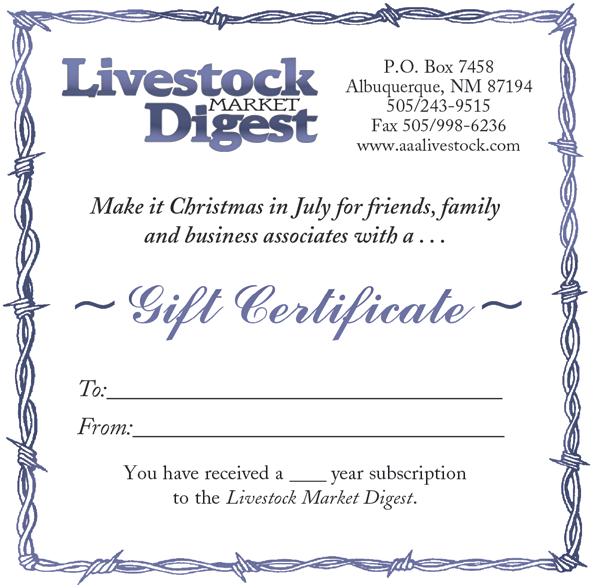 For advertising, subscription and editorial inquiries write or call: Livestock Market Digest P.O. Box 7458 Albuquerque, N.M. 87194