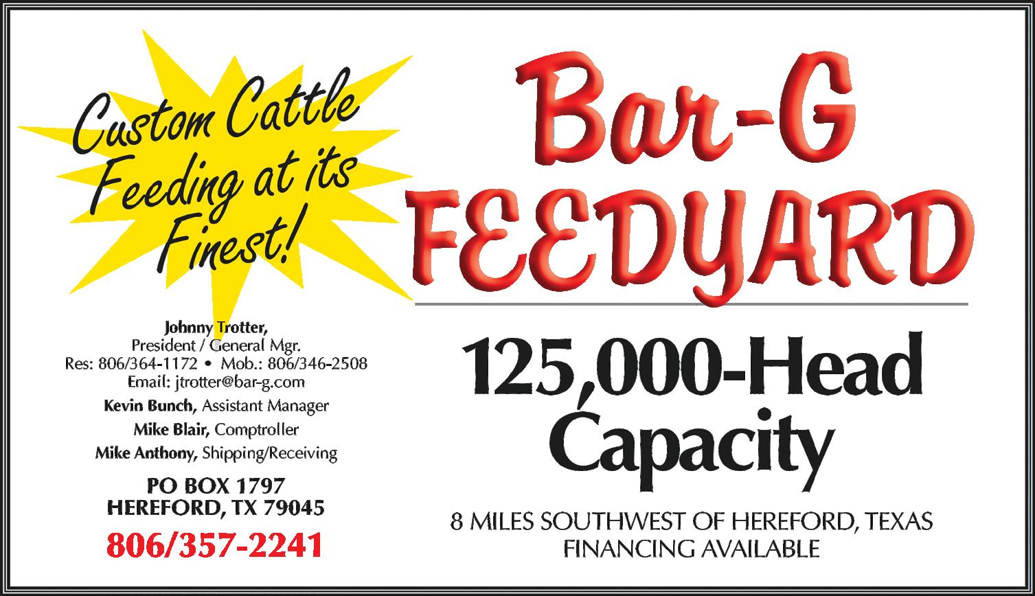 Page 10 Livestock Market Digest March 15, 2023 Kaddatz Auctioneering & Farm Equipment Sales New & Used parts, Tractor & Farm Equipment. Salvage yard: Tractors, Combines, Hay & Farm Equipment Online auctions: We can sell your farm, ranch & construction equipment anywhere in the U.S. 254-221-9271 Order parts online at www.farmstore.com – 15% rebate www.kaddatzequipment.com CLASSIFIEDS BEEFMASTER 210.732.3132 • beefmasters.org 118 W. BANDER A ROAD BOERNE, T X 78006 g•u•i•d •e Bradley 3 Ranch Ltd. www.bradley3ranch.com M.L. Bradley, 806/888-1062 Cell: 940/585-6471 Ranch-Raised ANGUS Bulls for Ranchers Since 1955 Annual Bull Sale February 10, 2024 at the Ranch NE of Estelline, TX angus
