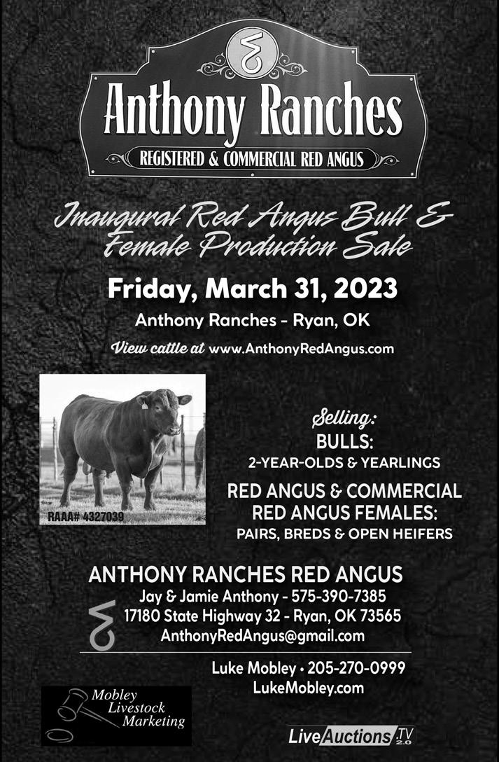 BULL SALE Redd Ranches Annual APRIL 8 TH 2023 ◆ PARADOX, COLORADO PEDIGREE IS ONE THING, PERFORMANCE IS EVERYTHING! 108 YEARS OF HIGH ALTITUDE GENETICS DNA PROFILED ◆ PAP SCORED ◆ FREE DELIVERY SITE UNSEEN BUYING GUARANTEE ◆ LIVE INTERNET BIDDING REDD RANCHES IS IN THE BUSINESS OF PRODUCING TOP ELITE BULLS THAT MAKE YOU MORE PROFITABLE! RED ANGUS ◆ BLACK ANGUS ◆ SIMANGUS OVER 70 YEARS OF ARTIFICIAL INSEMINATION, ONE OF THE LARGEST, LONGEST RUNNING, HIGH ALTITUDE HERDS IN THE NATION! 1-800-442-8557  | REDDRANCHES@GMAIL.COM | REDDRANCHES.COM