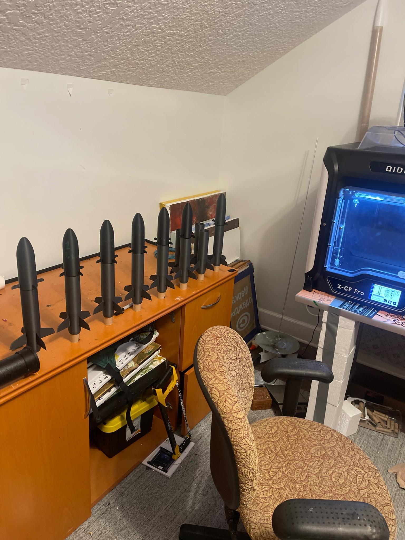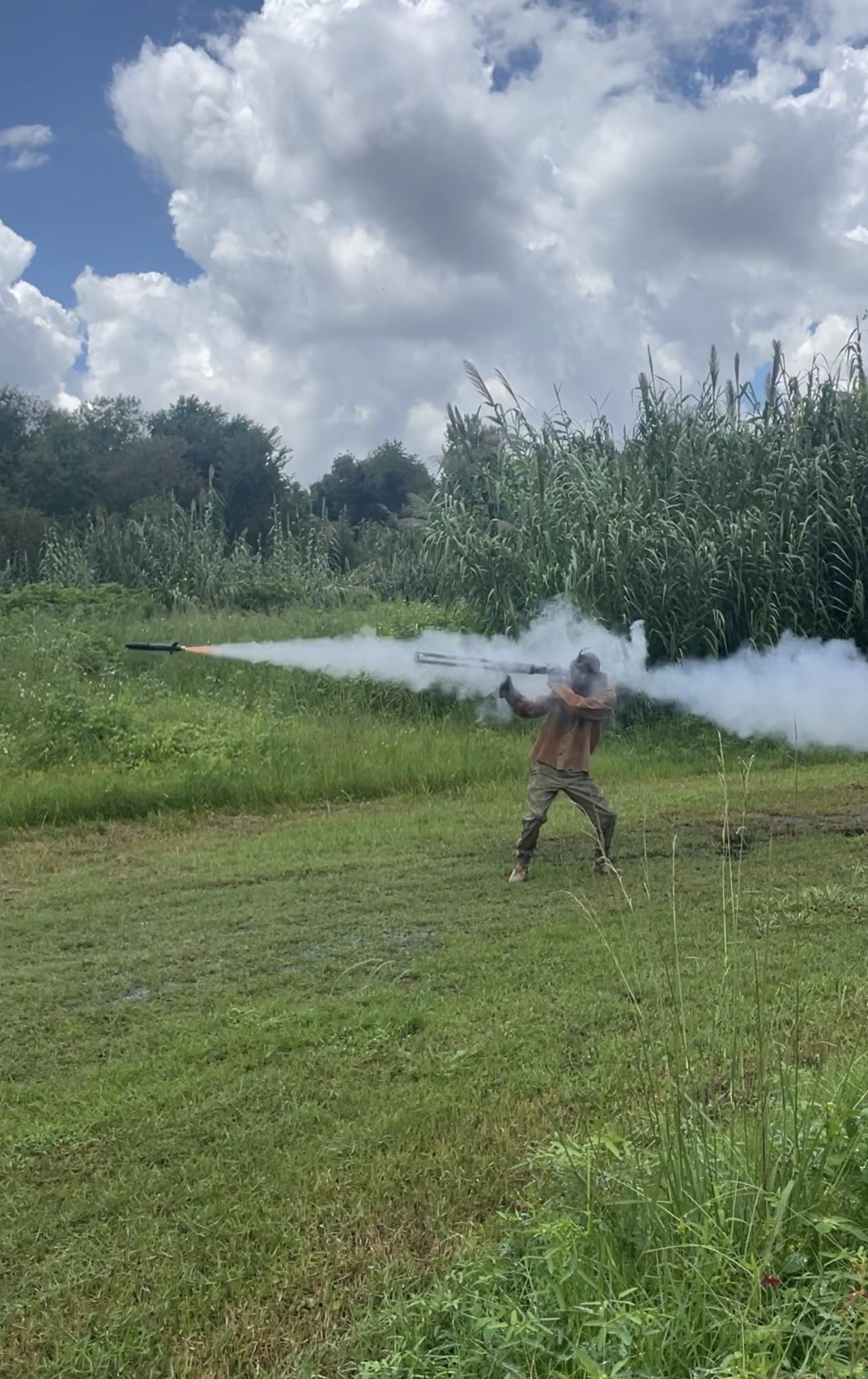 The goal of this project was to design and build a rocket launcher. The device uses a PVC pipe, coated in fire-proof paint, fitted with anodized black aluminum guide bars. This device’s main use is to help workers start controlled forest fires