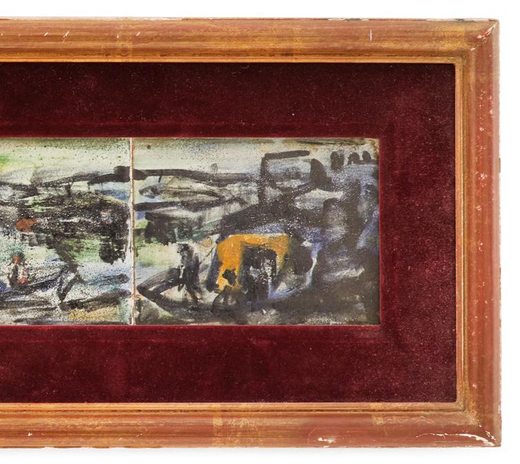 “Le Port,” painted and glazed ceramic, 7-7/8” x 18”