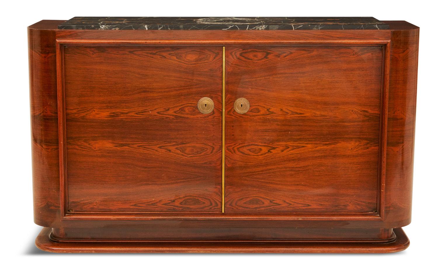 mid-20th century, rosewood and marble, h. 39-1/2”, w. 68”, d. 21”