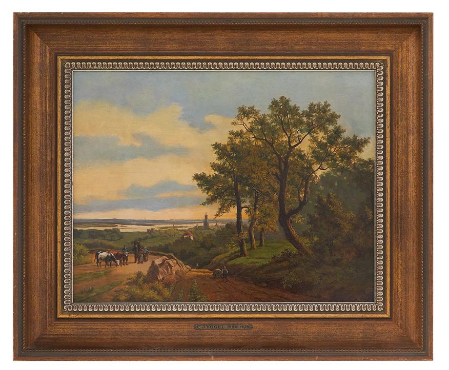 oil on cradled wood panel unsigned. Framed. 11-1/4” x 17”, framed 18-1/2” x 23-1/2”