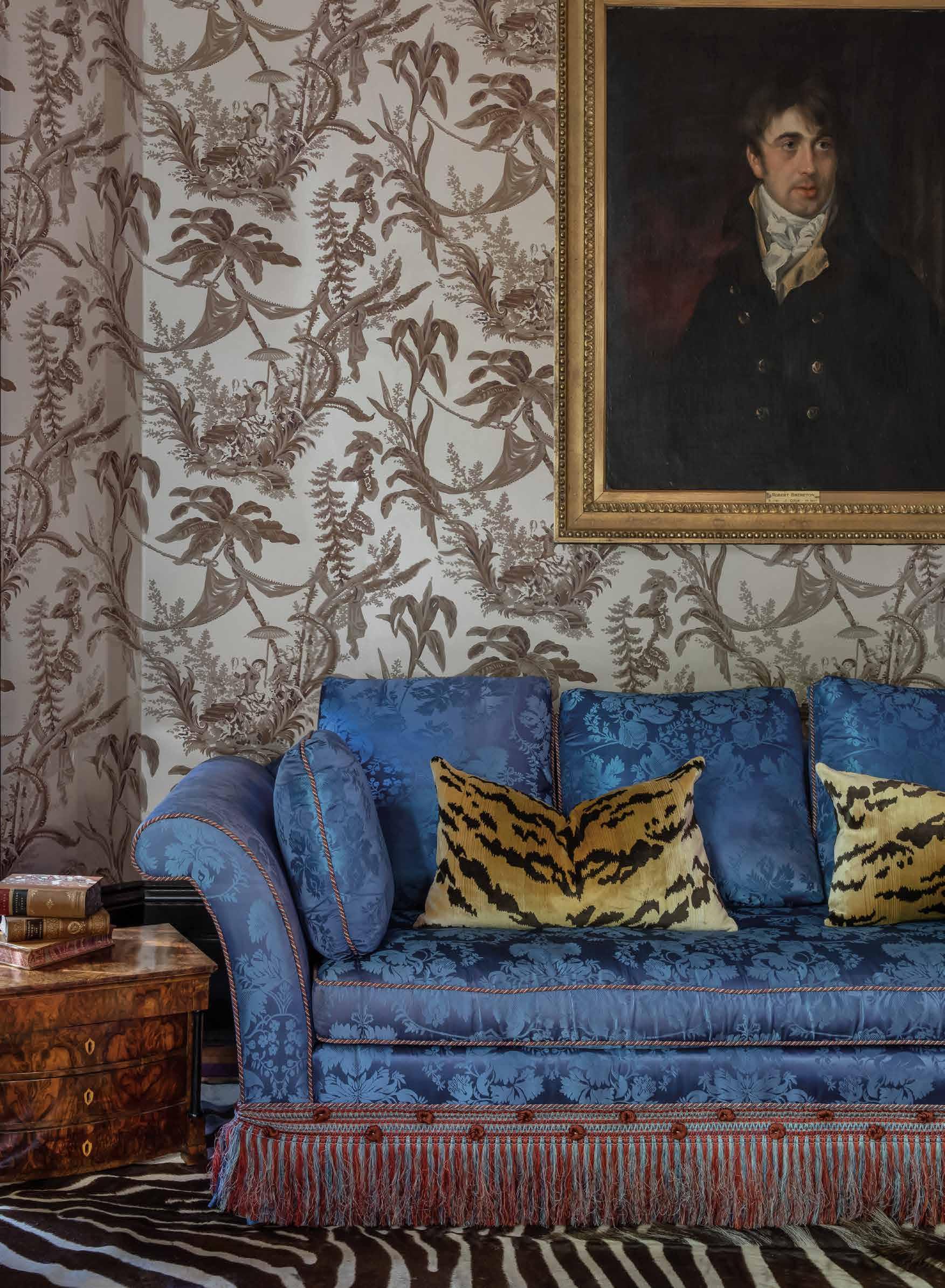 From the glass-and-wrought-iron front doors and gold-gilded accents to the Fortuny silk-upholstered walls and expansive woodworking, every rich detail was impeccably considered. With more than 26,000 sq. ft. of interiors, the part country retreat, part city dwelling provided Ed Harris of Harris Sanders Interior plenty of space with which to play.