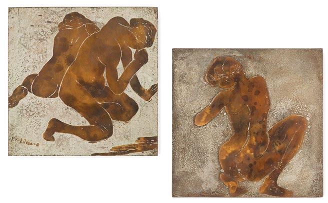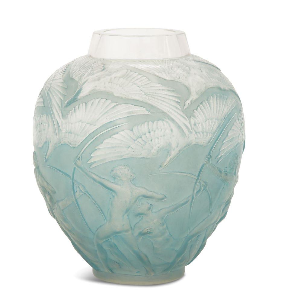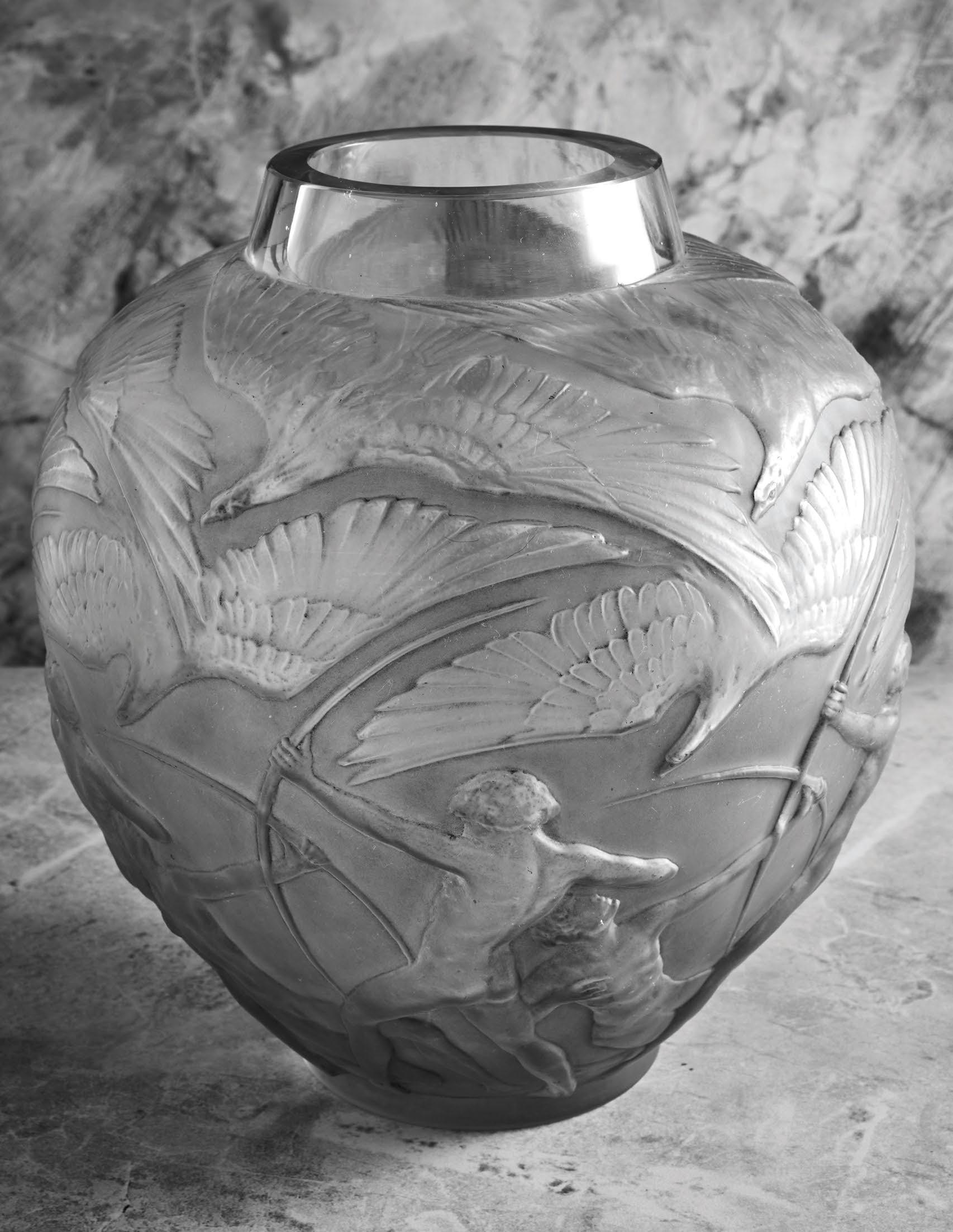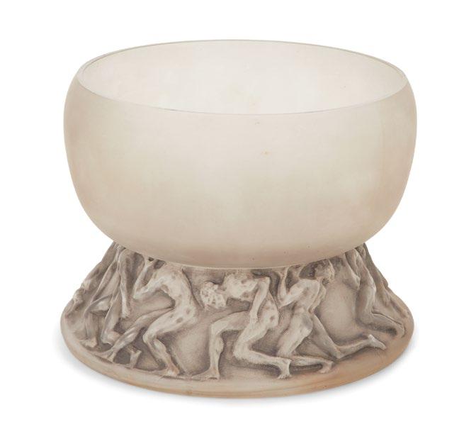 (above) Lot 66: Molded and Frosted Glass "Rennes" Bowl, ca. 1933; (opposite) Lot 67: Molded and Frosted Glass "Lutteurs" Vase, ca. 1914