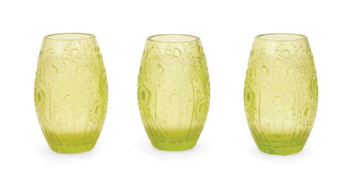 Lalique trained as a fine jeweler at the height of the Belle Époque, an artistically fecund period of opulence and exuberance, and was soon inspired by such diverse styles as Japonisme and the English Arts and Crafts Movement. Initially experimenting with the inclusion of glass elements in his jeweled necklaces and brooches, Lalique inevitably turned toward the design and production of the glass vessels for which he would soon become so well known. Employing virtually every known glass technique – blowing, molding, pressing, pâte de verre, cutting, opalescence and tinting – the resultant works were first representative of the Art Nouveau and, later, Art Deco movements that briskly swept across France and the world.