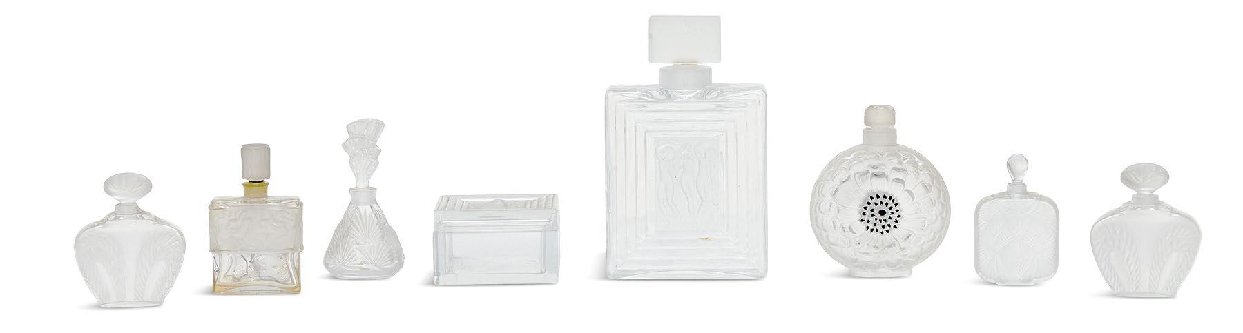 Lot 119: Collection of Lalique Molded and Frosted Glass Objets de Toilette (showing two out of eight)