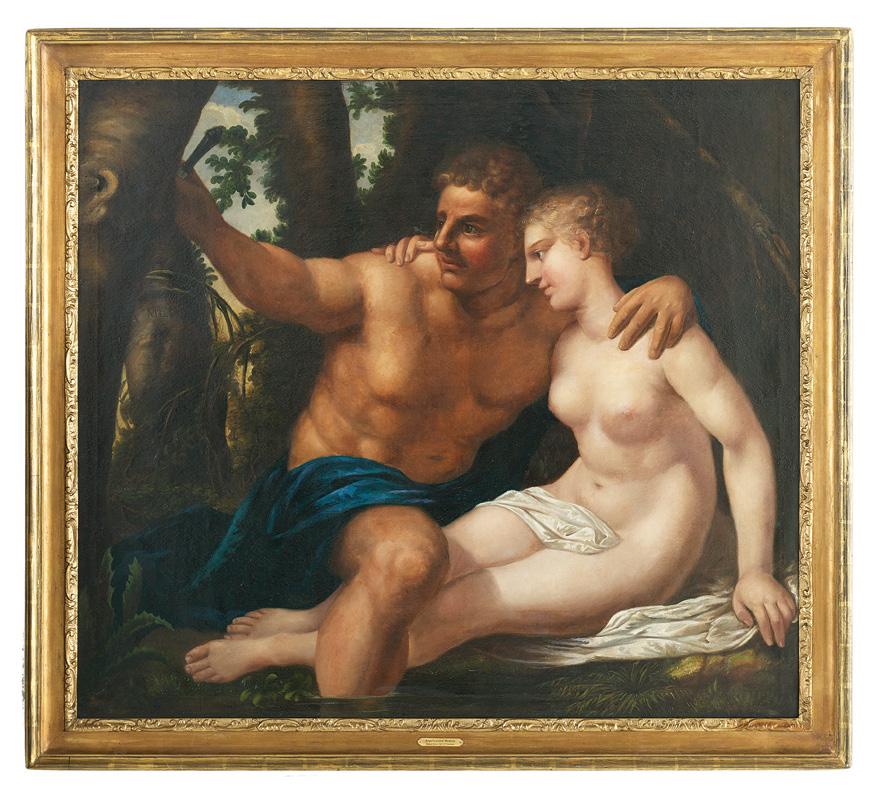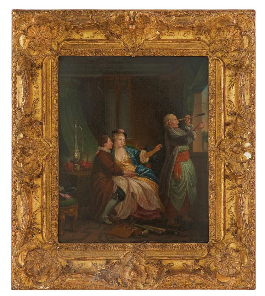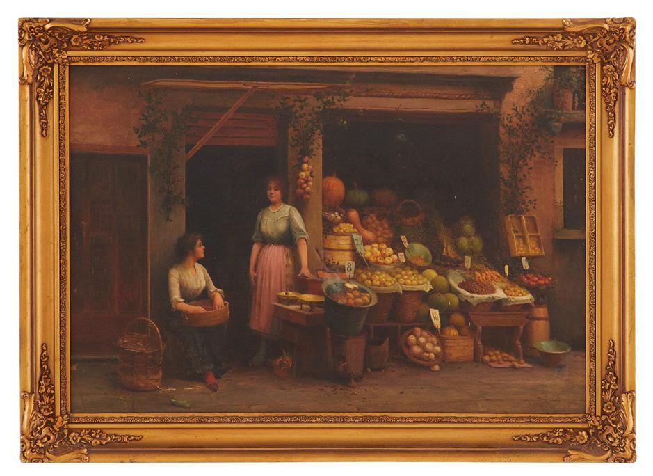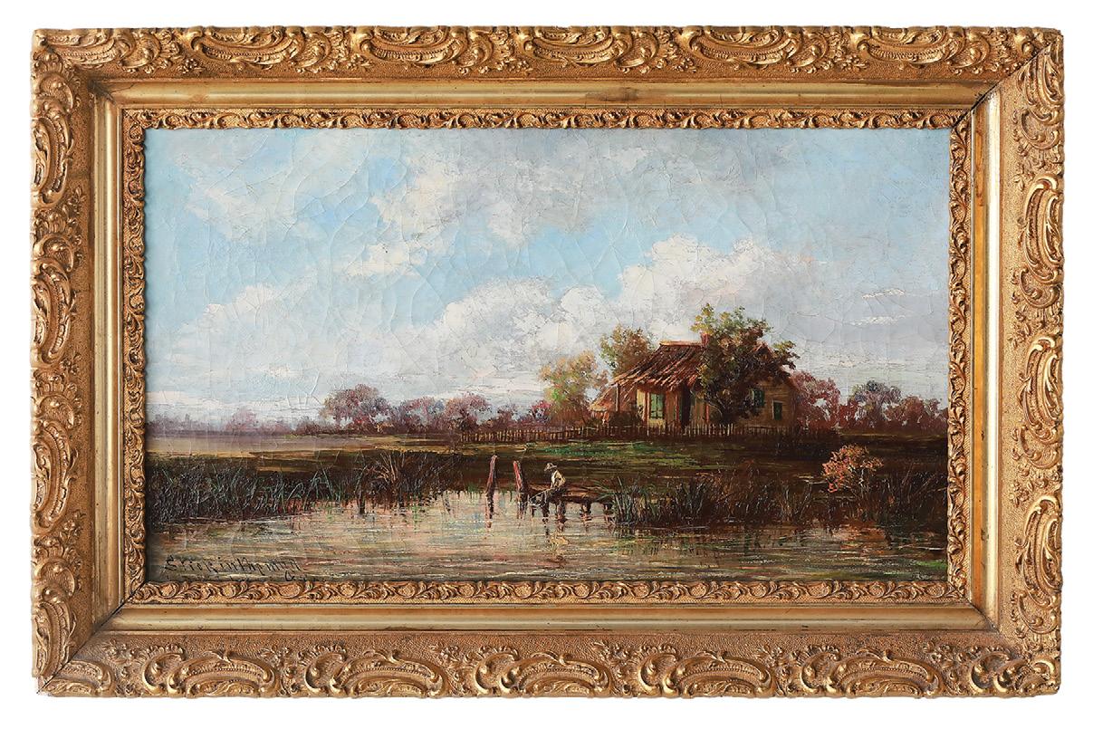oil on canvas signed lower right, affixed with “P. Cornette de Saint-Cyr, Paris” label.