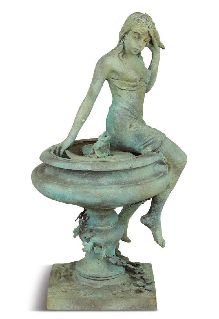 figure with its mouth open, piped for water, with molded scales and a realistically curved tail.