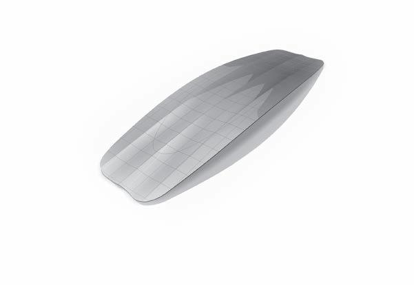 Combines the advantages of both a flat-bottomed board and concave. The tail area is completely flat, whilst the centre section of the board features concave. This shape benefits from earlier planning.