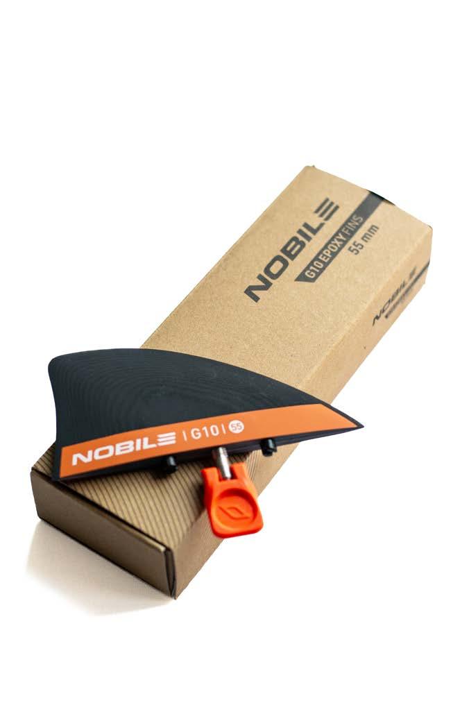 Nobile G10 fins are made of stiff glass composite which guarantees high durability. This material makes the connection between fins and the board very strong, while keeping the low flexibility of the fins. This ensures the high level of control when riding. Nobile G10 fins are compatible with the tool-free “Click&Go” mounting standard and can be used interchangeably with PA fins. The „ultra orange” colour of the fins is superbly visible from the distance, so losing your precious kiteboard in the water is impossible
