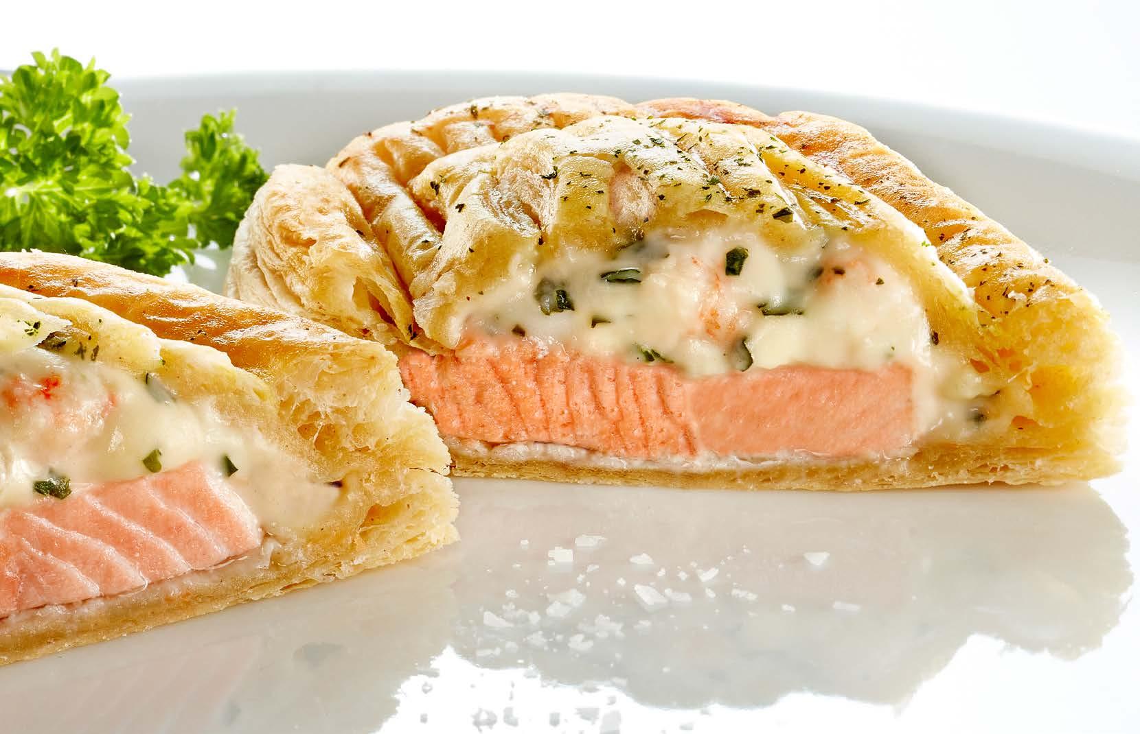 We have strong competencies in making deliciously tasting products with aromatic and flavorful sauces, crispy breadings or batters, or delicate and richs puff pastry doughs. Combining these competencies we are also able to create appetizing specialty products like salmon lasagna or fish with sauces, or explore the benefits of