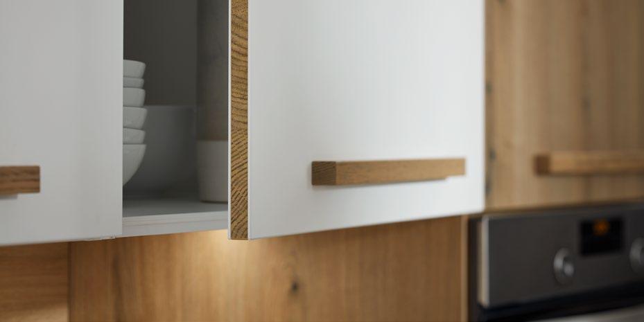 Het maakt niet uit voor welke keuken van ons u ook kiest: perfect is hij pas wanneer hij ook achter de fronten aan de hoogste kwaliteitseisen voldoet. Voor een homogeen totaalbeeld hebben daarom de korpussen van elke door ons opgeleverde keuken zowel binnen als buiten hetzelfde decor –niet alleen bij houttinten, maar ook bij alle effen kleuren.