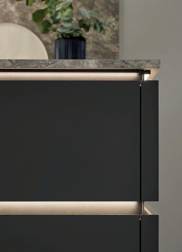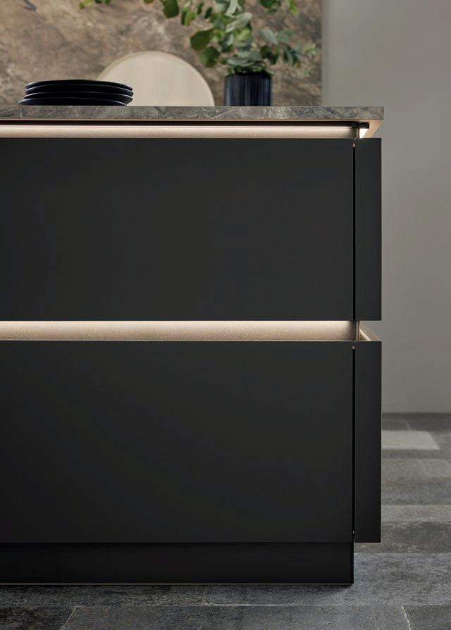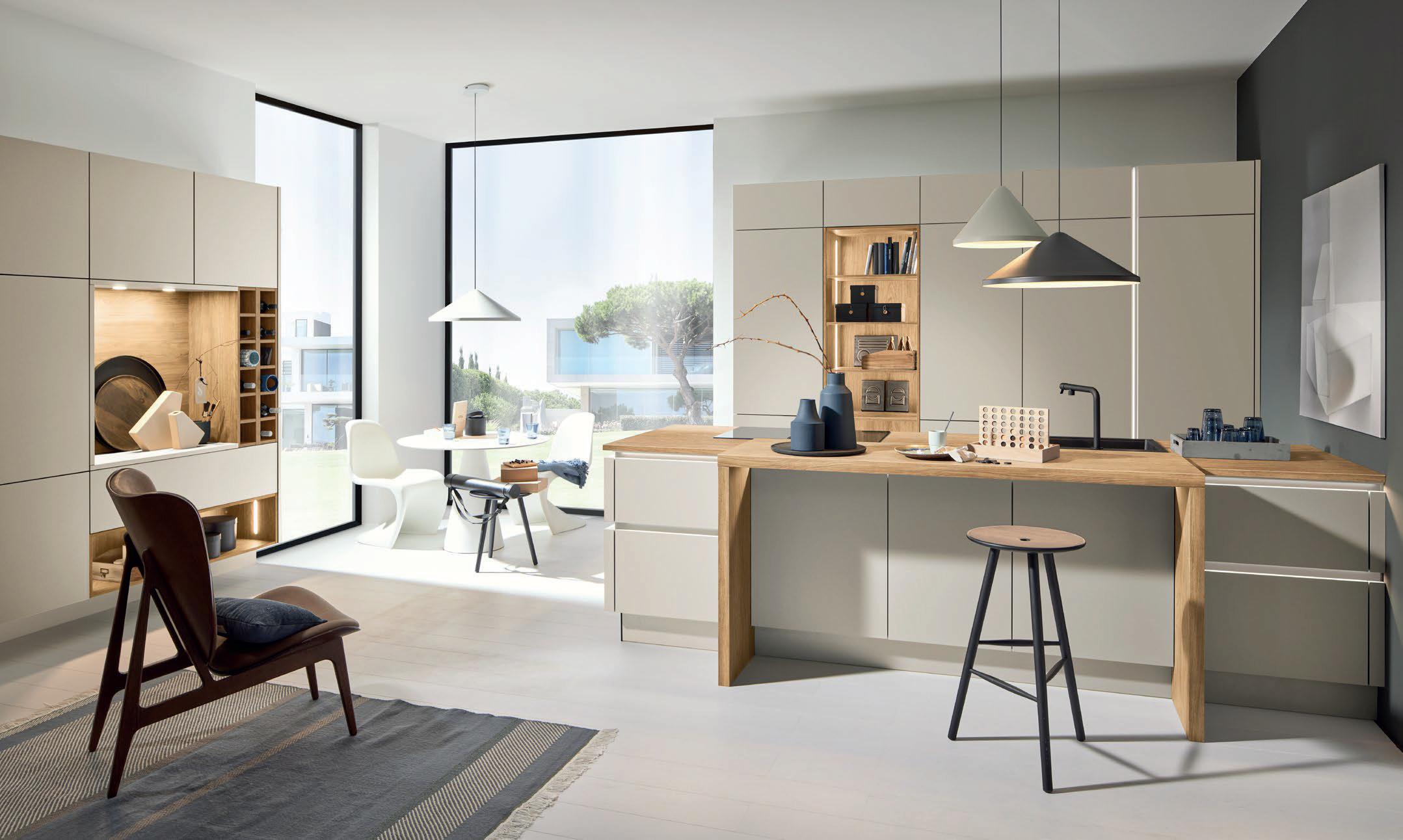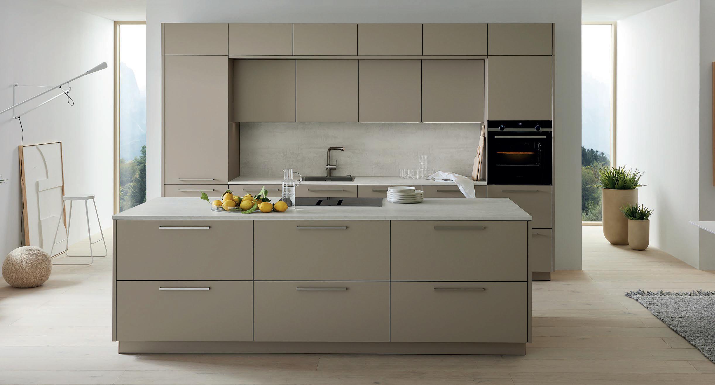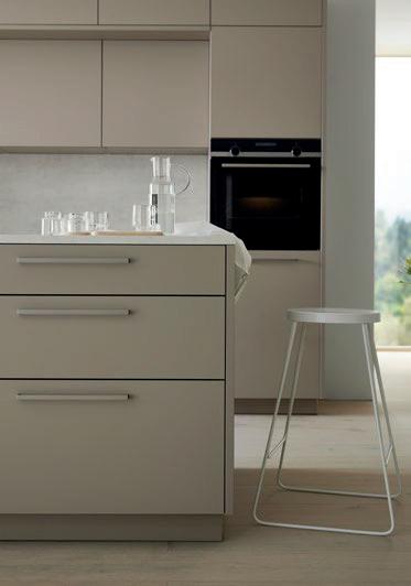 Grepen in exact dezelfde matte lakkleuren als de fronten maken ton-sur-ton concepten of spannende contrasten mogelijk. Zo ontstaat een nog harmonieuzer samenspel van design en functie – tot in het kleinste detail.