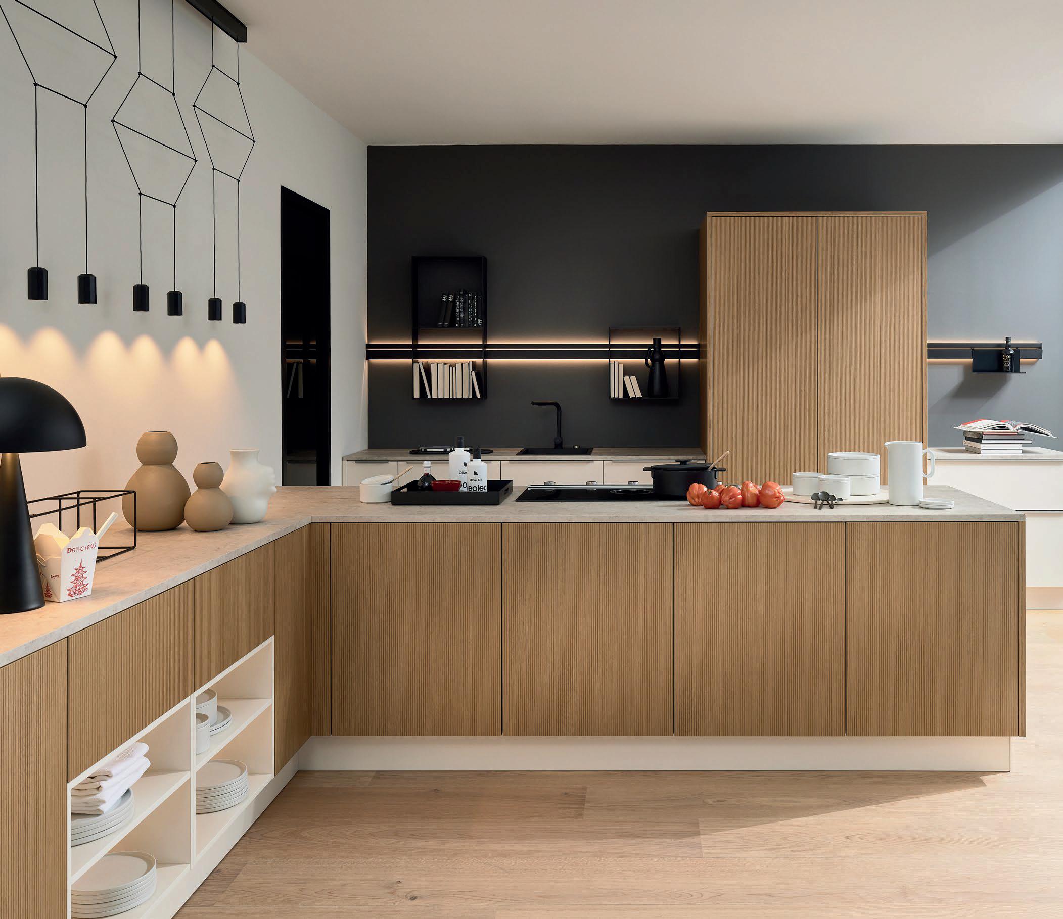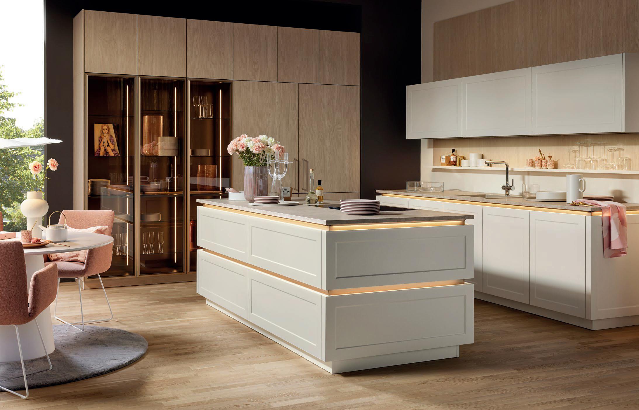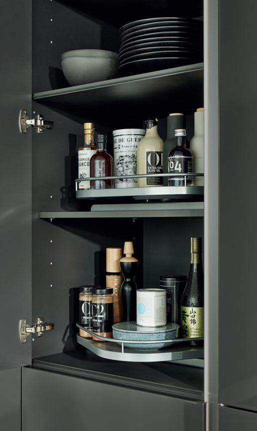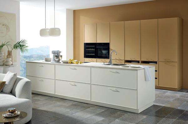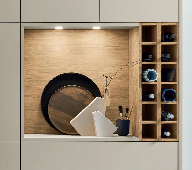 Grepen in exact dezelfde matte lakkleuren als de fronten maken ton-sur-ton concepten of spannende contrasten mogelijk. Zo ontstaat een nog harmonieuzer samenspel van design en functie – tot in het kleinste detail.