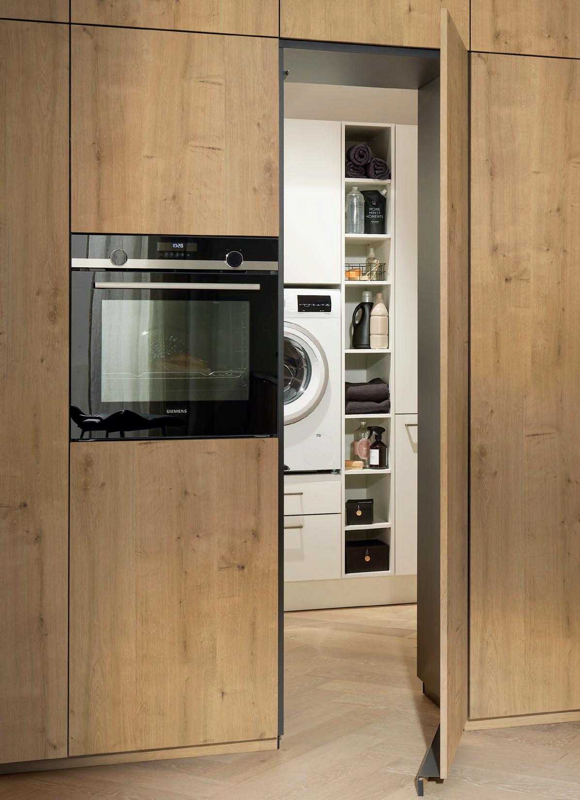 Voor een homogeen totaalbeeld hebben daarom de korpussen van elke door ons opgeleverde keuken zowel binnen als buiten hetzelfde decor –niet alleen bij houttinten, maar ook bij alle effen kleuren.