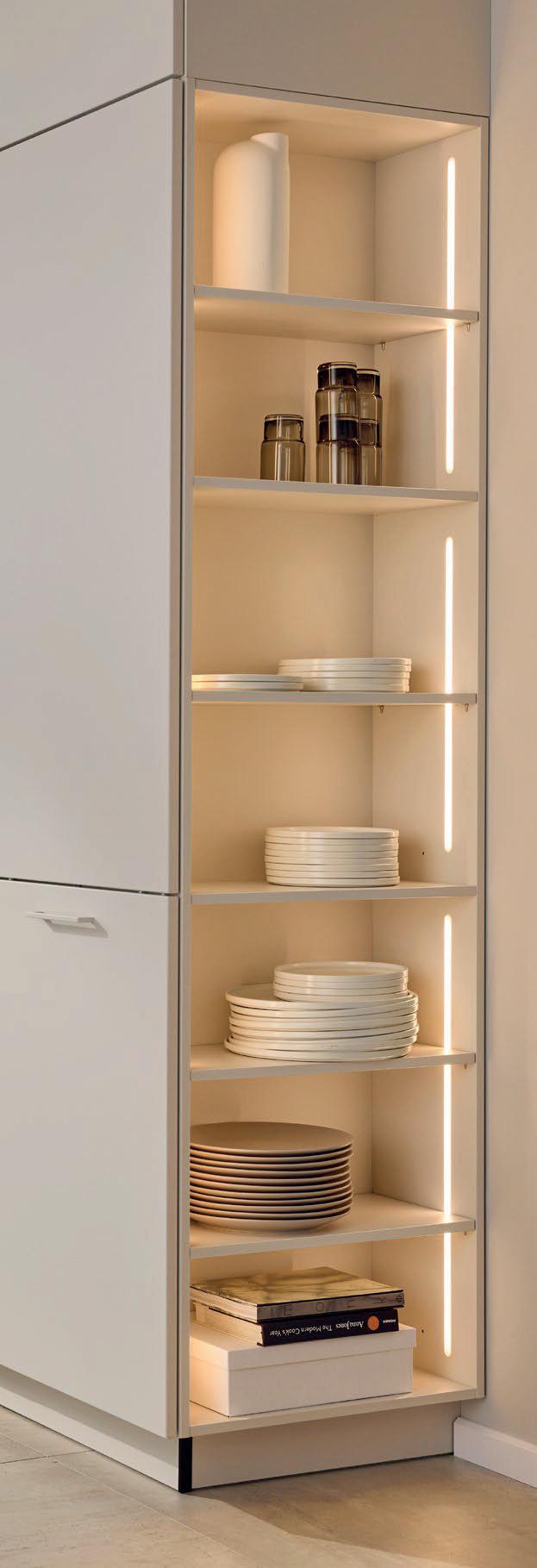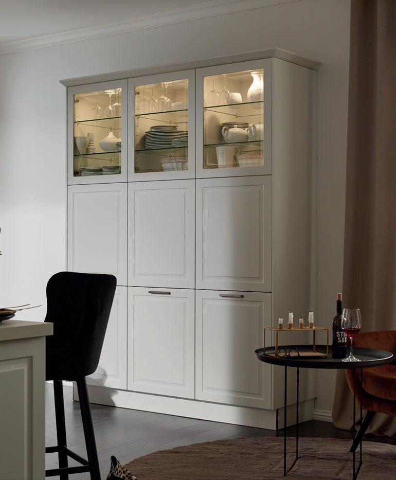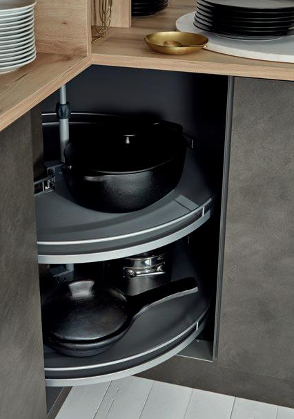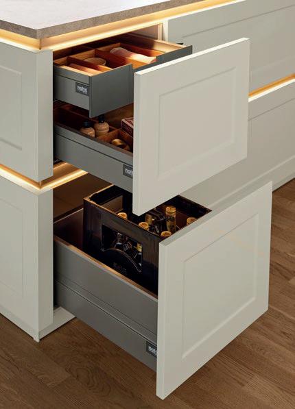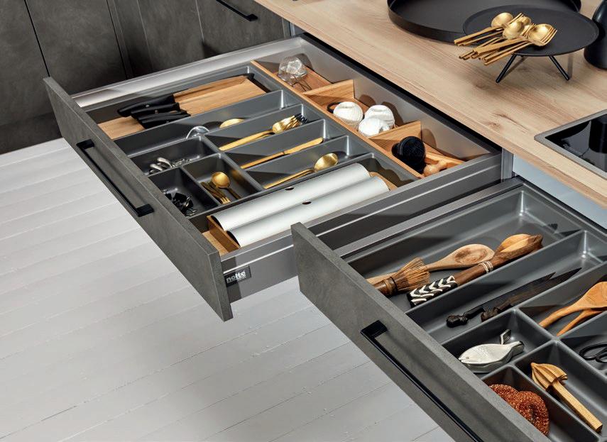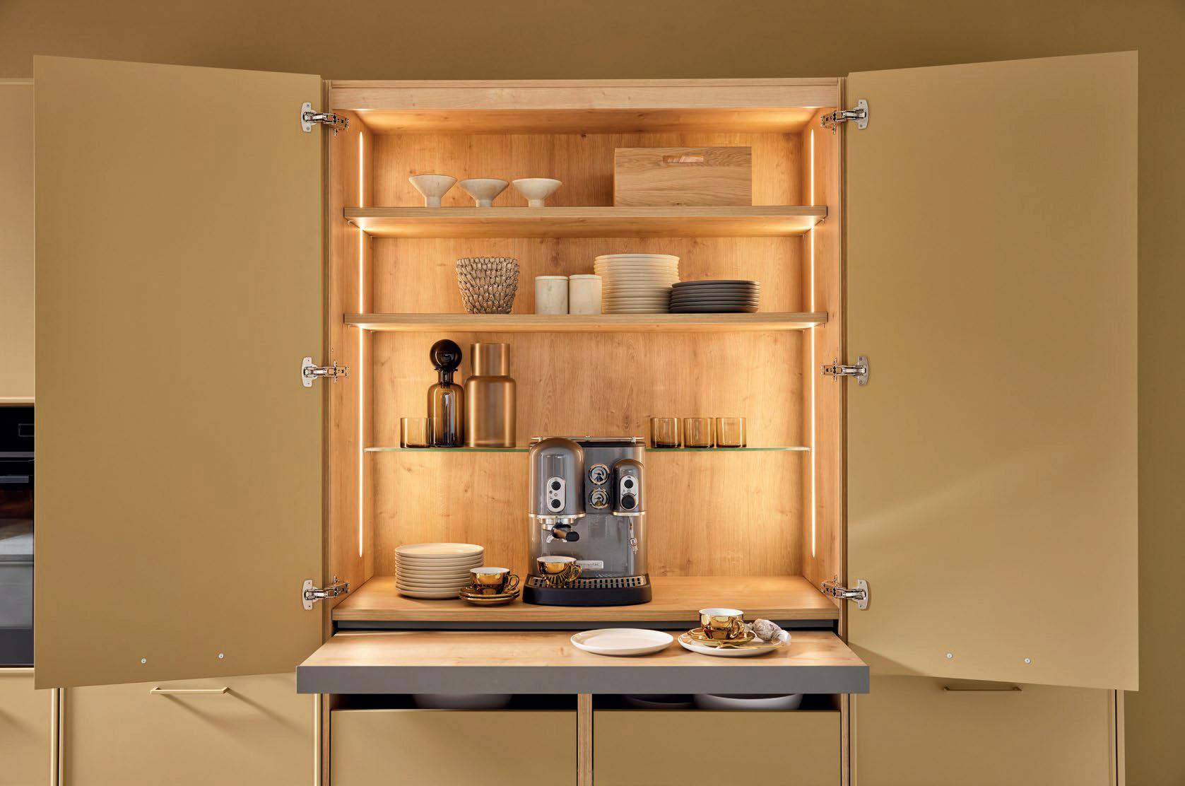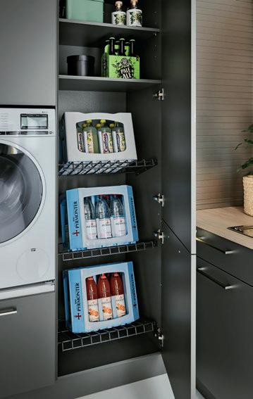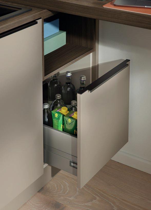 Deze korpushoogte maakt de integratie van 40 cm hoge uittrekelementen en 20 cm hoge laden mogelijk, waardoor de ruimte optimaal wordt benut. Tegelijkertijd zorgt het voor eeneigentijdse look met goed doordachte details.