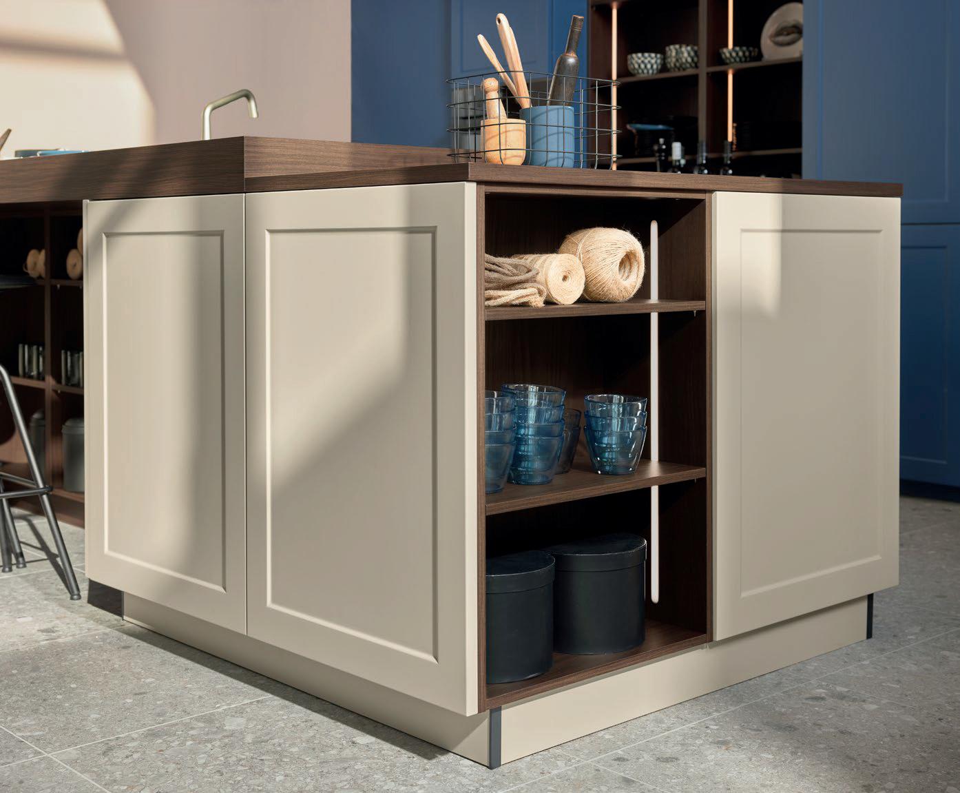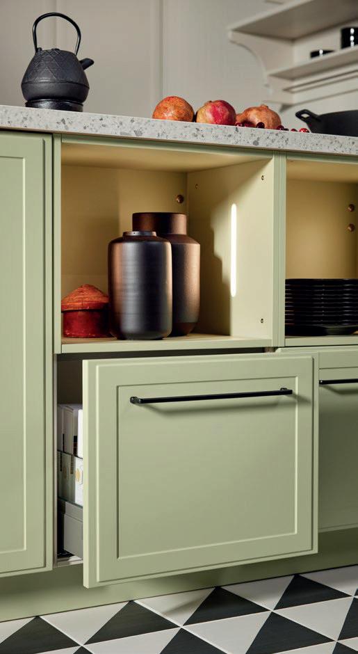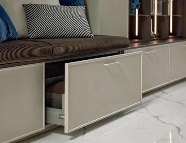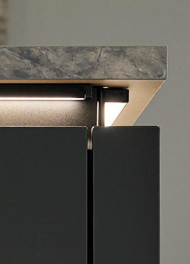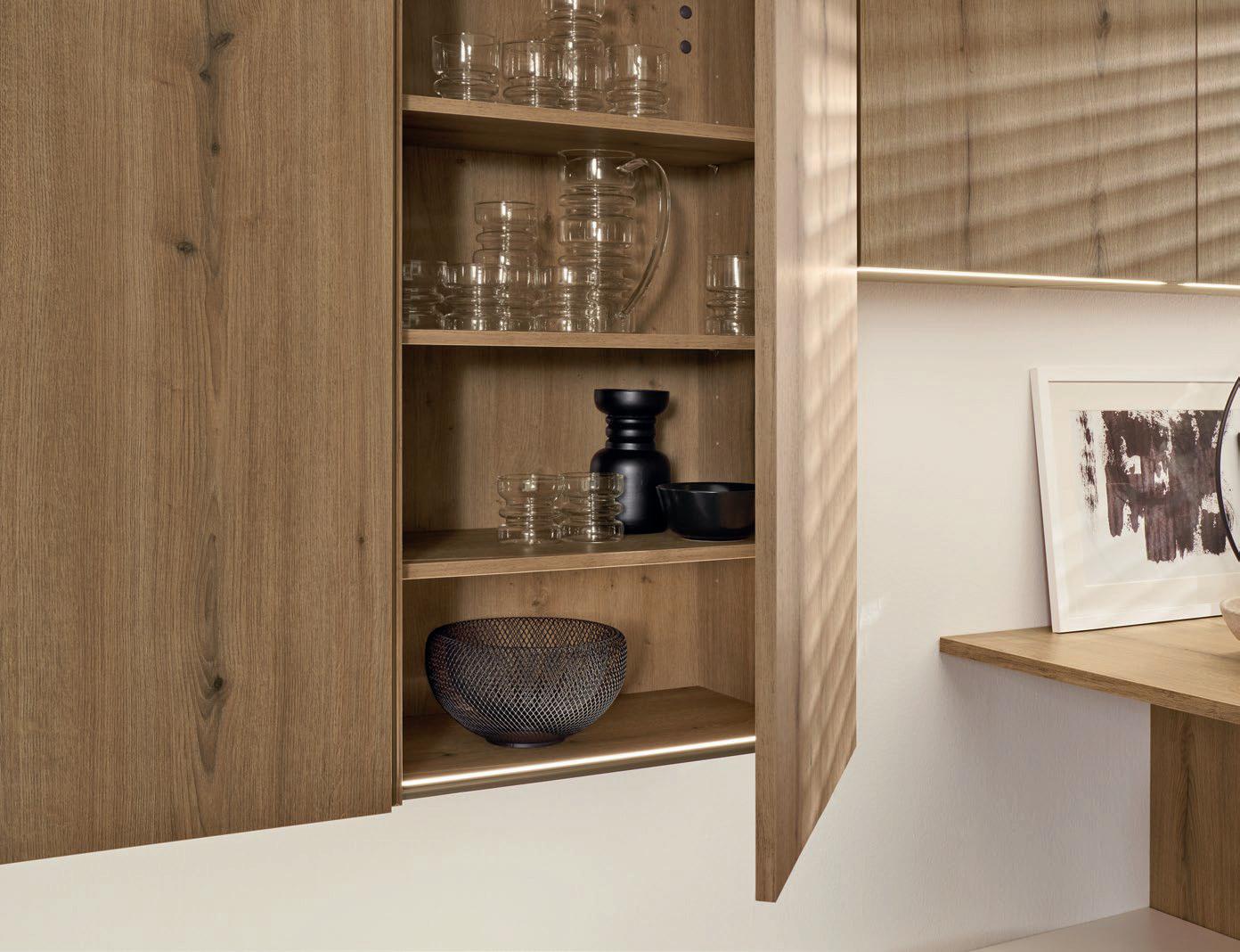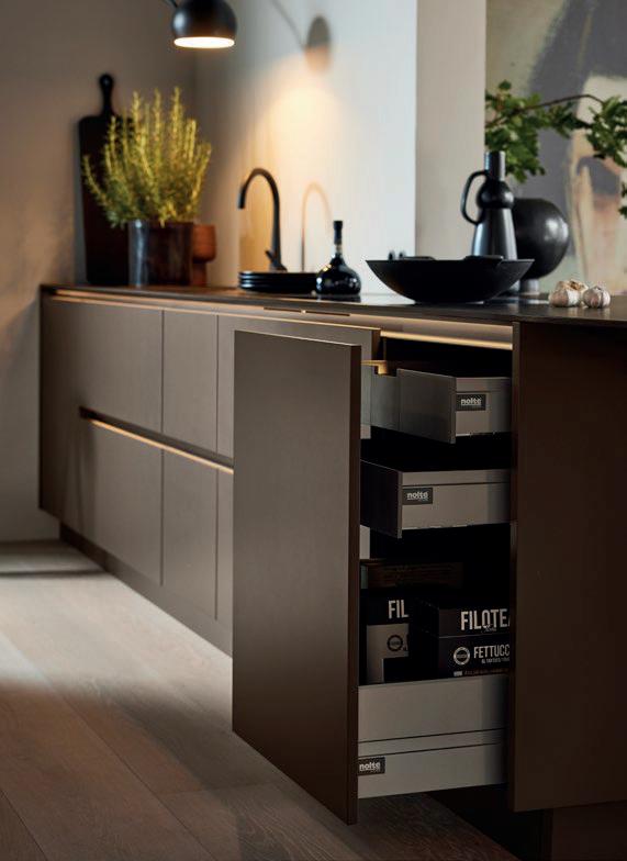Deze korpushoogte maakt de integratie van 40 cm hoge uittrekelementen en 20 cm hoge laden mogelijk, waardoor de ruimte optimaal wordt benut. Tegelijkertijd zorgt het voor eeneigentijdse look met goed doordachte details.