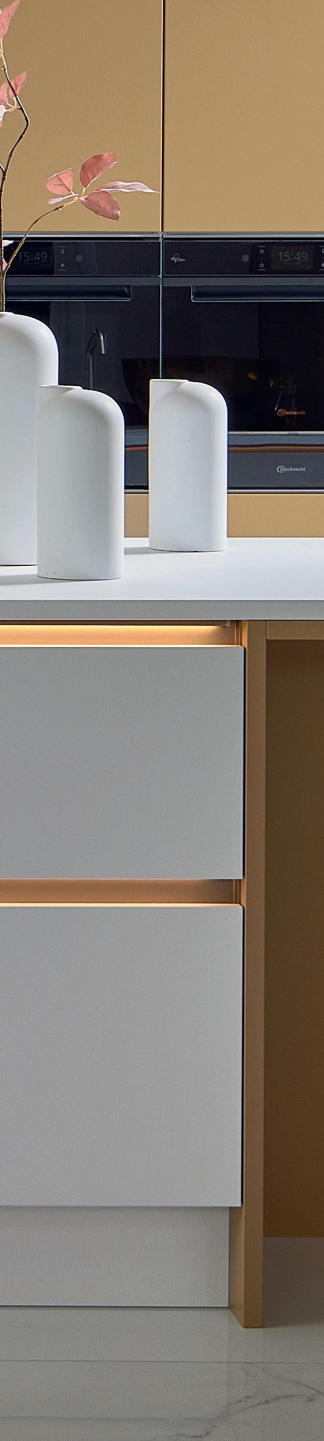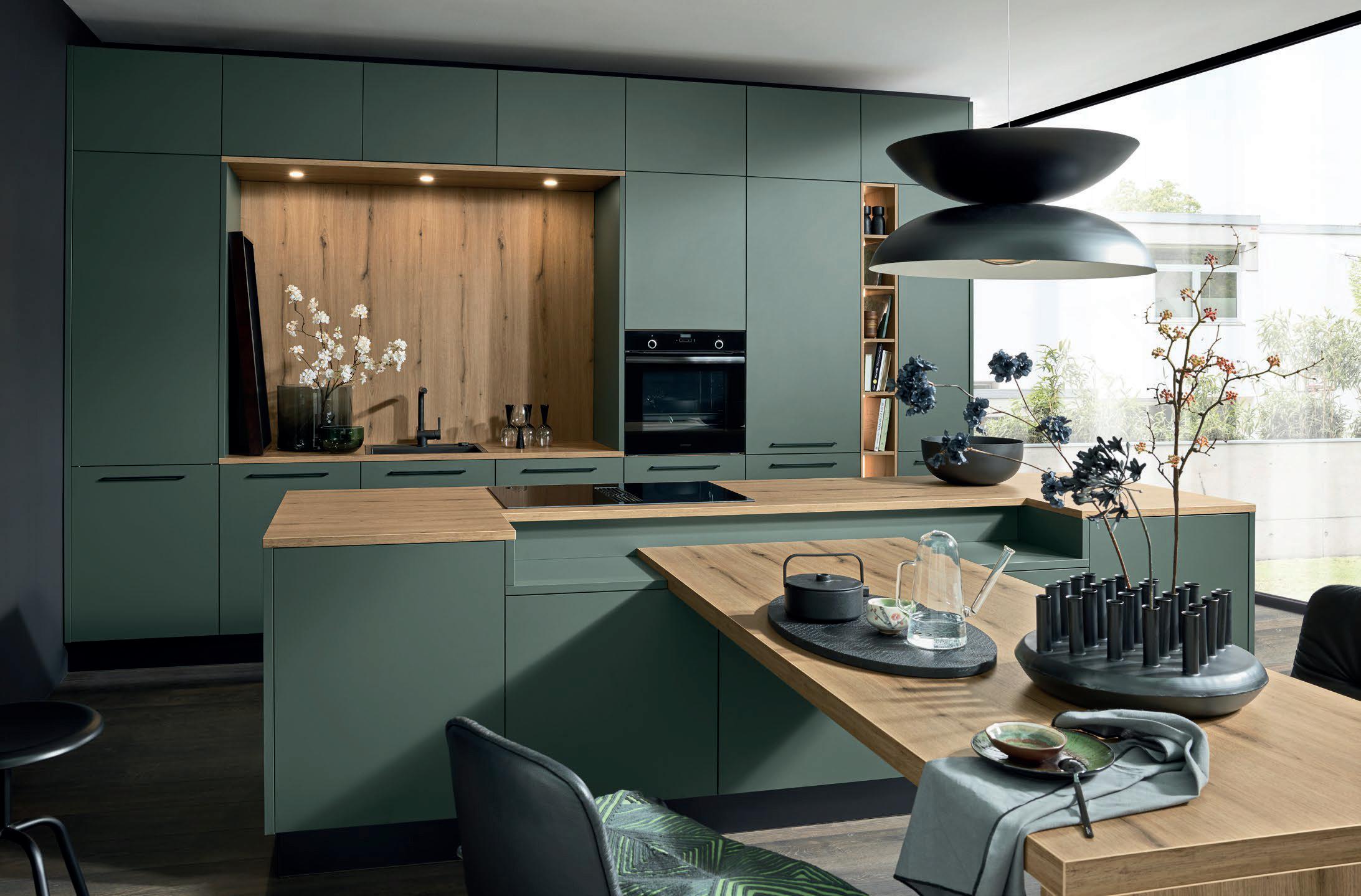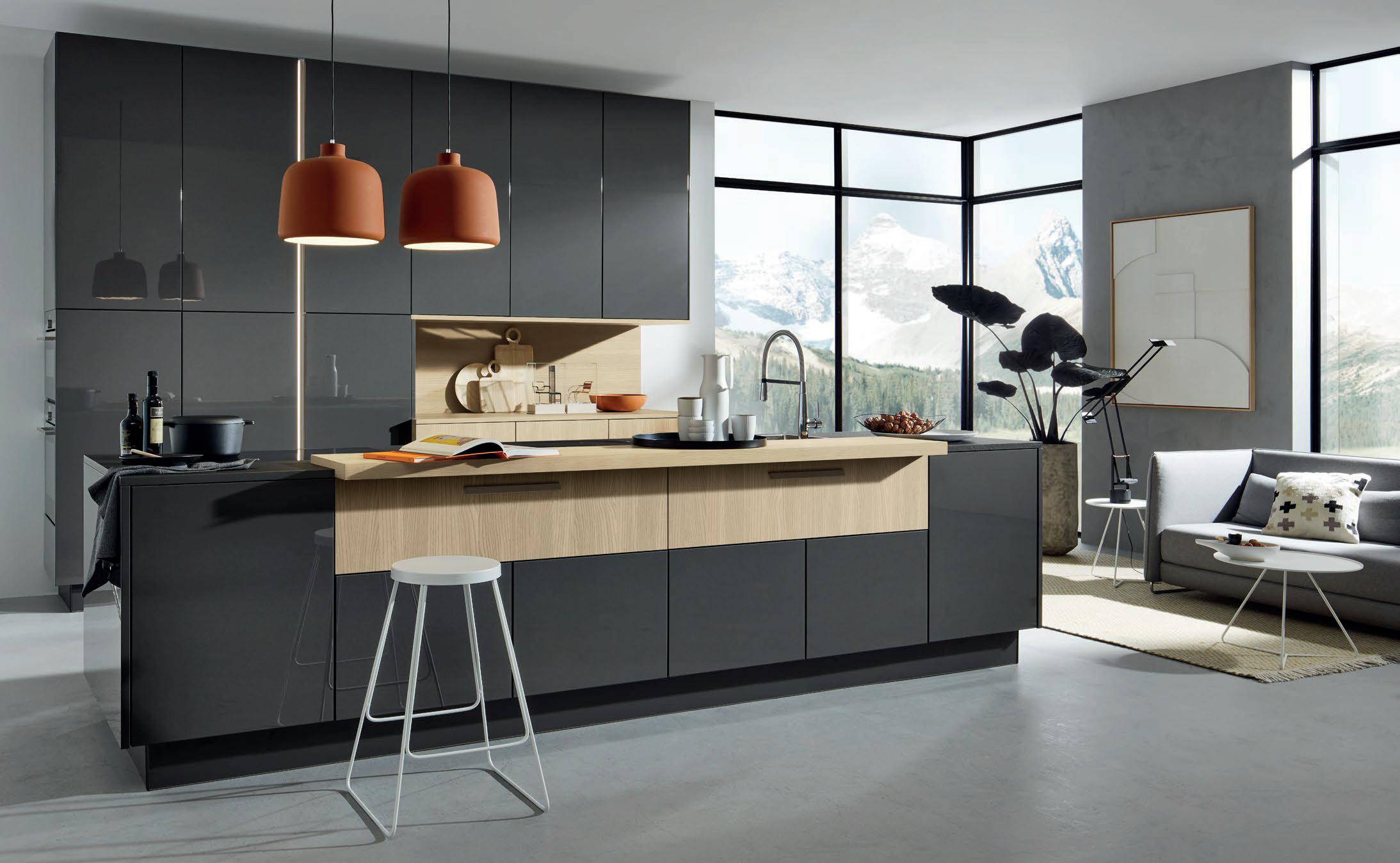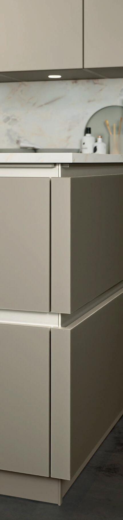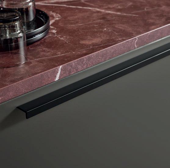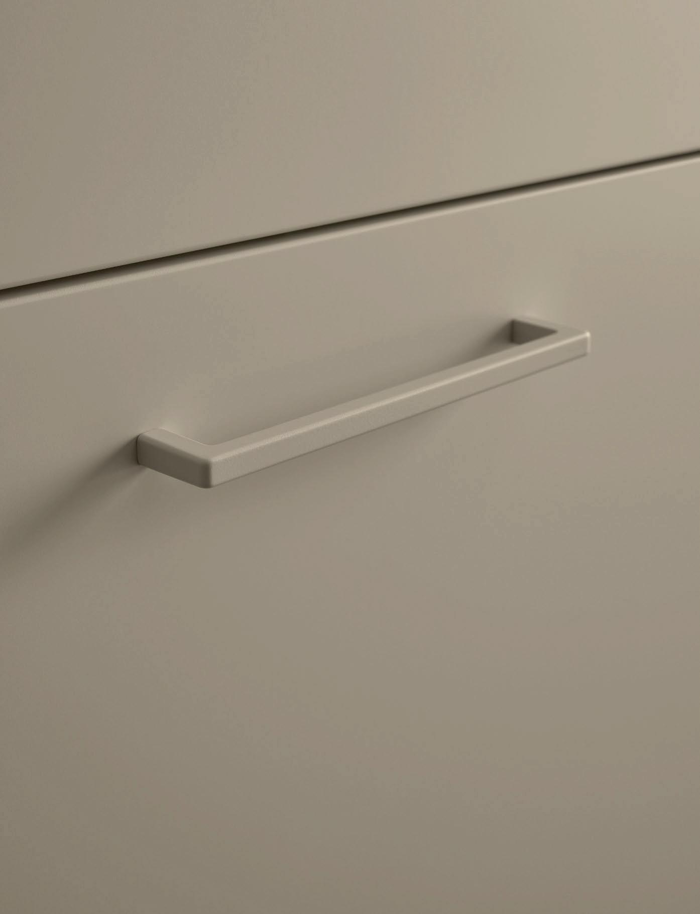 Grepen in exact dezelfde matte lakkleuren als de fronten maken ton-sur-ton concepten of spannende contrasten mogelijk. Zo ontstaat een nog harmonieuzer samenspel van design en functie – tot in het kleinste detail.