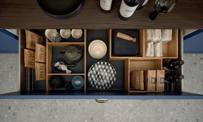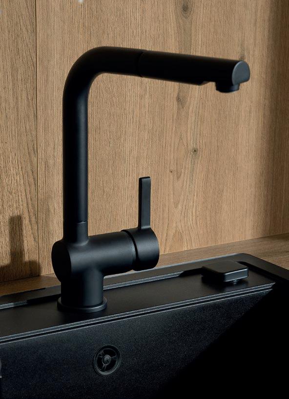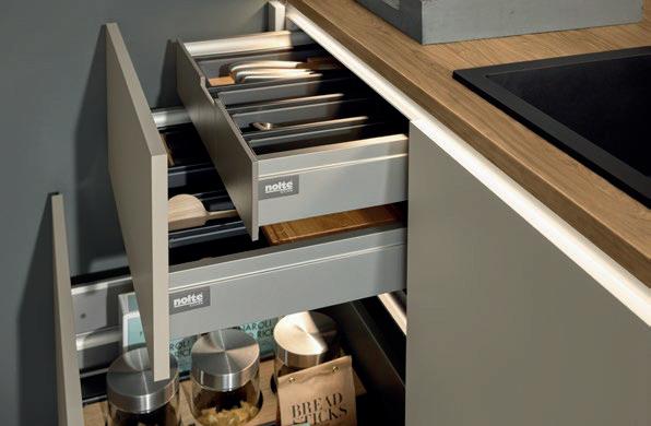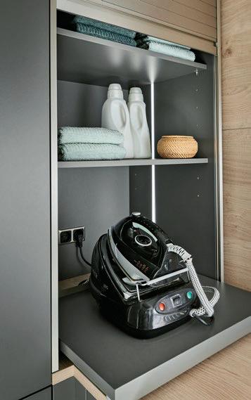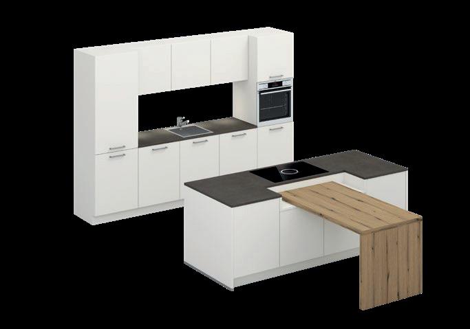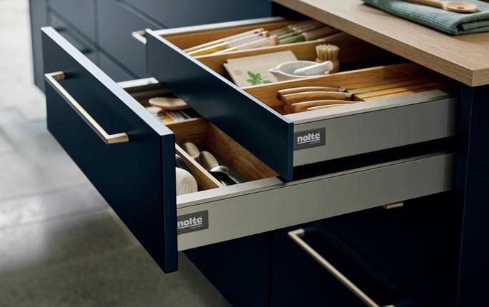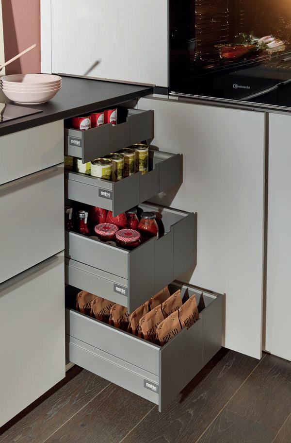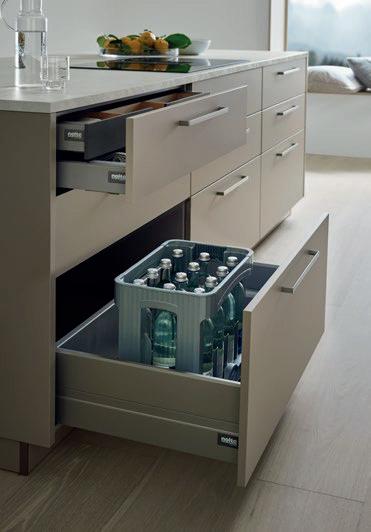 Deze korpushoogte maakt de integratie van 40 cm hoge uittrekelementen en 20 cm hoge laden mogelijk, waardoor de ruimte optimaal wordt benut. Tegelijkertijd zorgt het voor eeneigentijdse look met goed doordachte details.