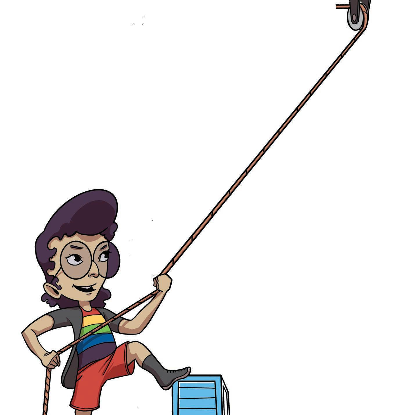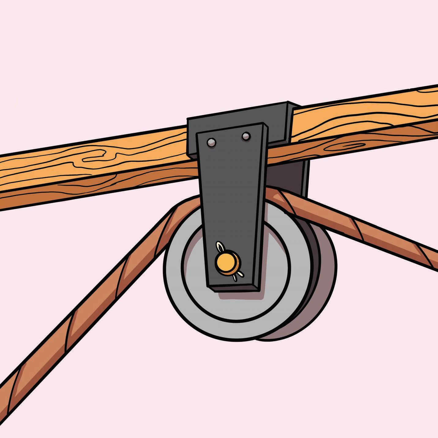 Have you ever zoooooomed on a zip line? That’s a moveable pulley! With a moveable pulley, both ends of the rope are attached to different points. The load is connected to the pulley, which moves between the points.
