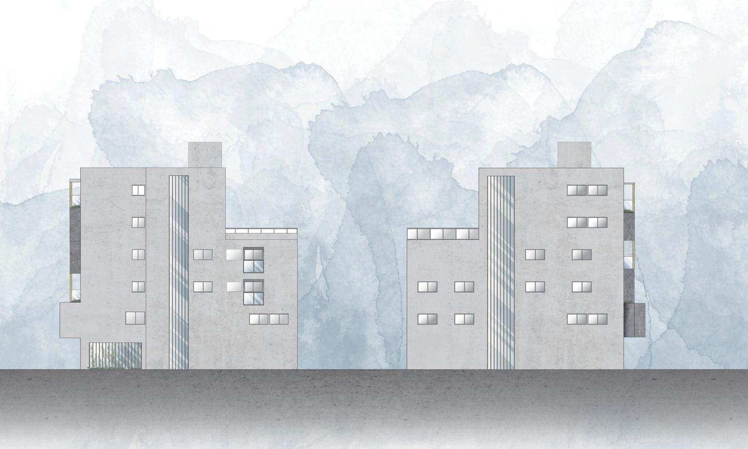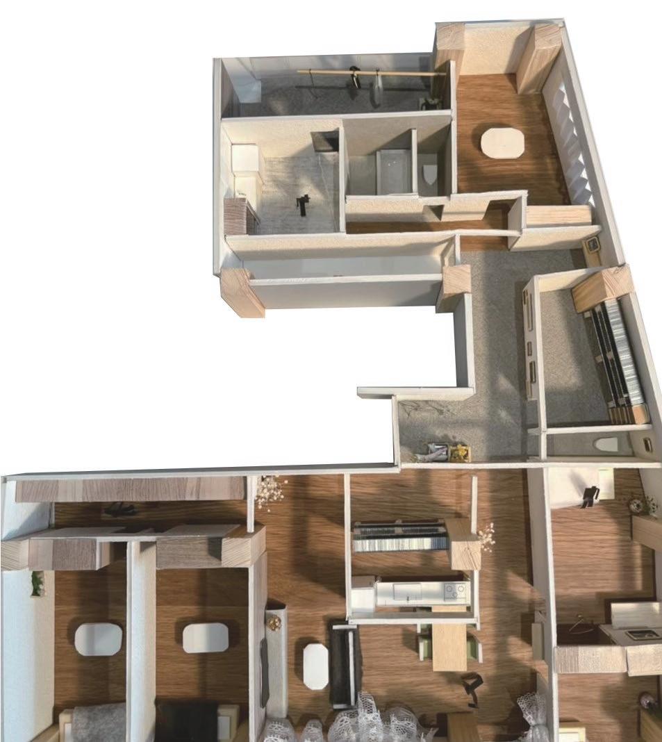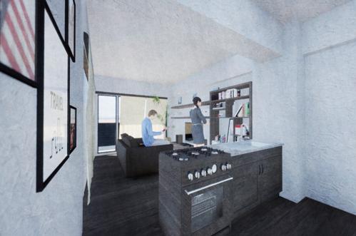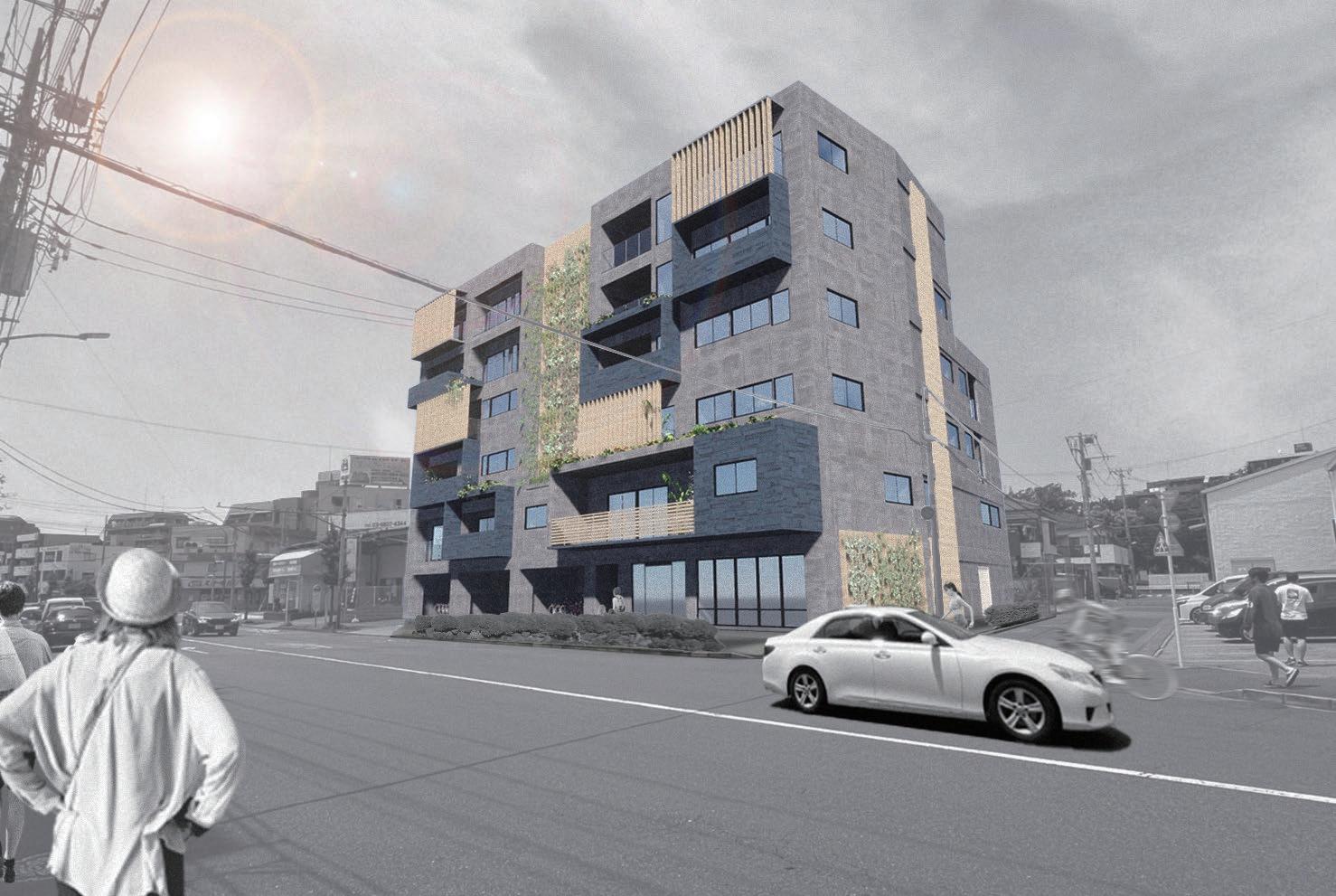 設計条件として施主4人家族の住戸とその他の住戸が定 められた。足立区の集合住宅の条例を守りつつ、実際に施 主からヒアリングした要望を取り入れつつ、我々をこだわ りを落とし込んだ設計となっている。 新しい集合住宅の造形を考えつつ、計5タイプに分かれ た特徴を持つ住戸を取り入れた集合住宅となっている。