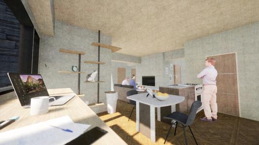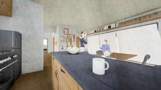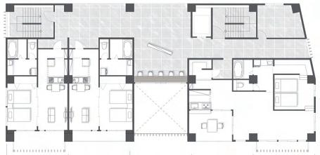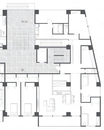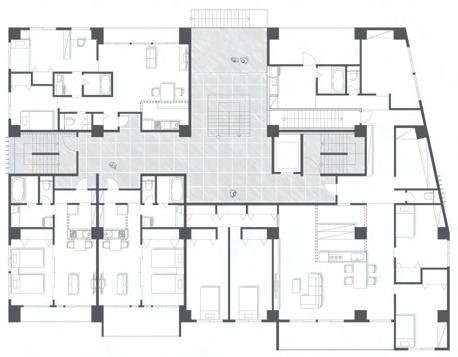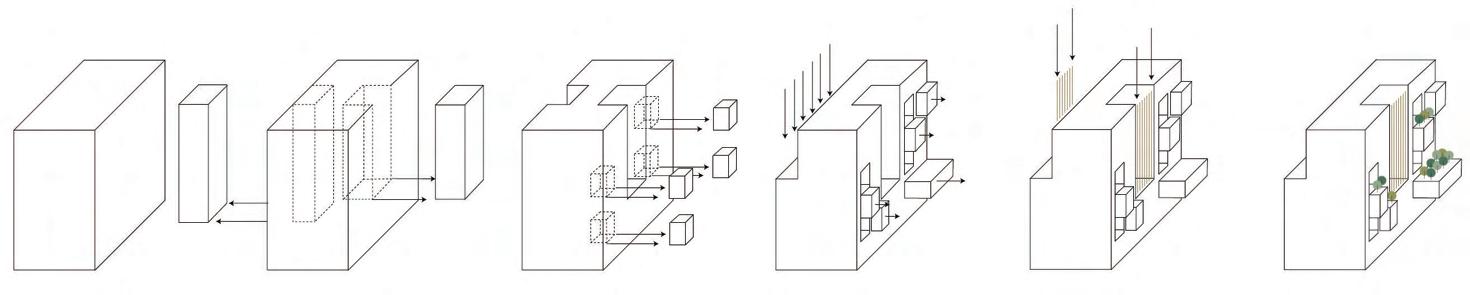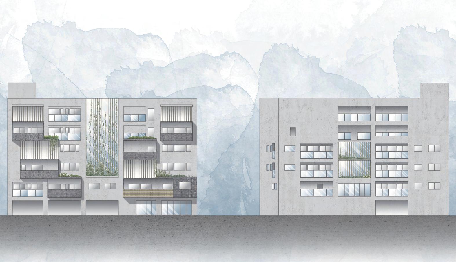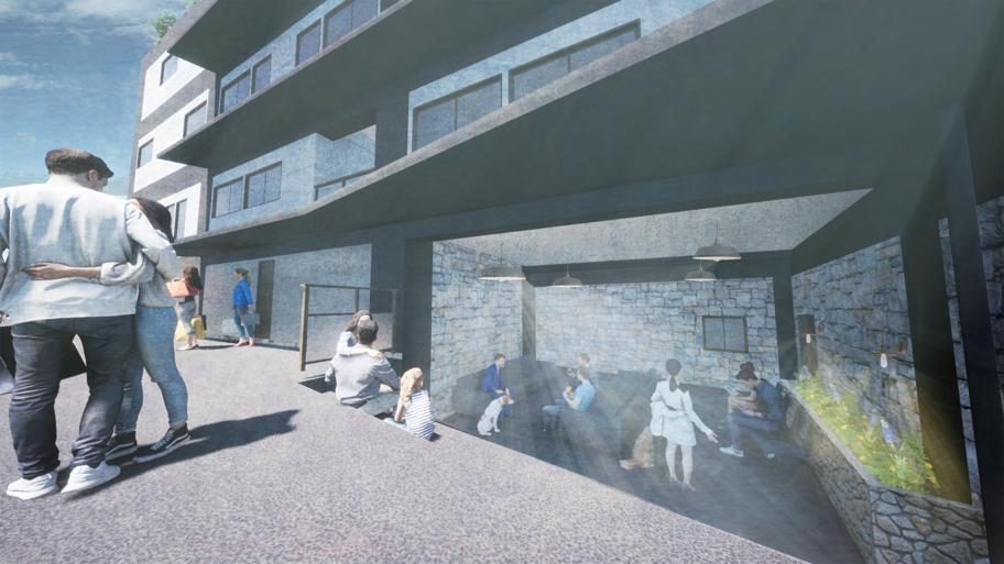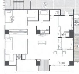設計条件として施主4人家族の住戸とその他の住戸が定 められた。足立区の集合住宅の条例を守りつつ、実際に施 主からヒアリングした要望を取り入れつつ、我々をこだわ りを落とし込んだ設計となっている。 新しい集合住宅の造形を考えつつ、計5タイプに分かれ た特徴を持つ住戸を取り入れた集合住宅となっている。
