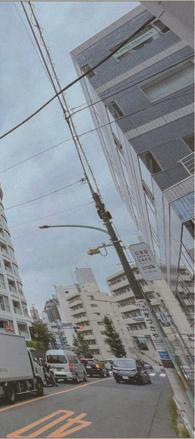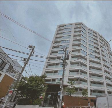 南面からマンションを見る。 緑を多用したファサードは 特徴的である。