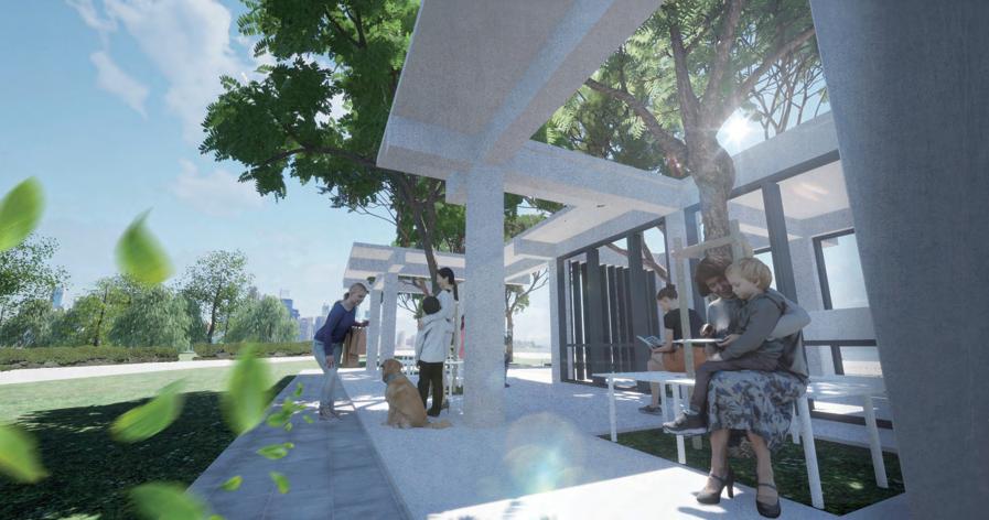 昭和から○○荘という共同住宅が増えたが、今では古臭 いと思われていることからあまり使われていないが、現代 でも○○荘という集合住宅は残り続けている。 このように昔から現代へ残り続けている○○荘から考 え、現代から未来まで残り続ける集合住宅を目指した。