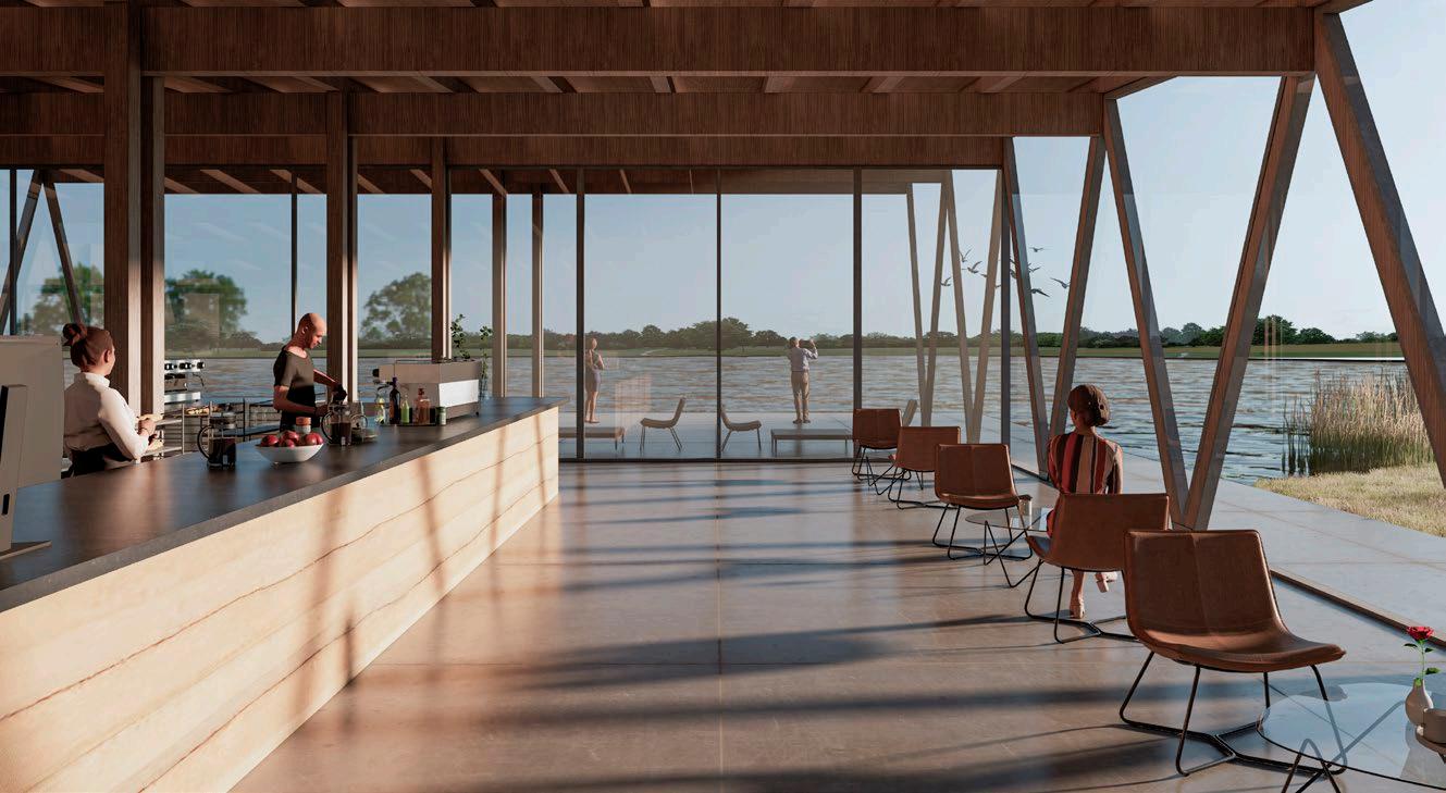 Dining Hall: 9000 m², serving 7500 people Research: 18000 m², serving 3000 people Exhibition: 4500 m², serving 600 people Supermarket: 4500 m², serving 1500 people Vertical Farming: 18000 m², serving 30000 people Industrial Area: 12000 m², serving 6000 people