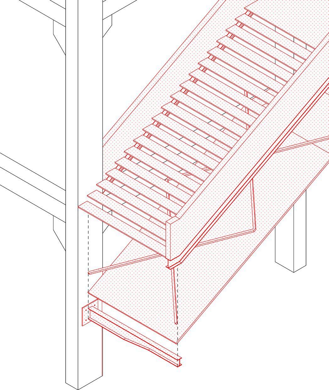 Due to the favorable structural performance of the original boiler room, the concrete frame and steel roof are retained. The added corridor is fixed to the original frame structure of the boiler room.